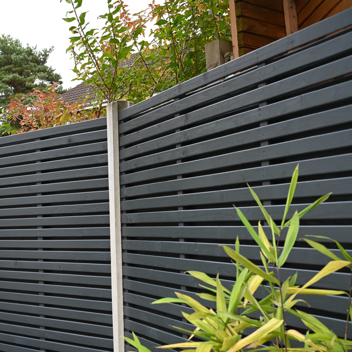 The 6ft Grey Contemporary Slatted Fence Panel from Forest comes pre-painted and is a great choice for creating a partition or as boundary fencing where full privacy is not required.