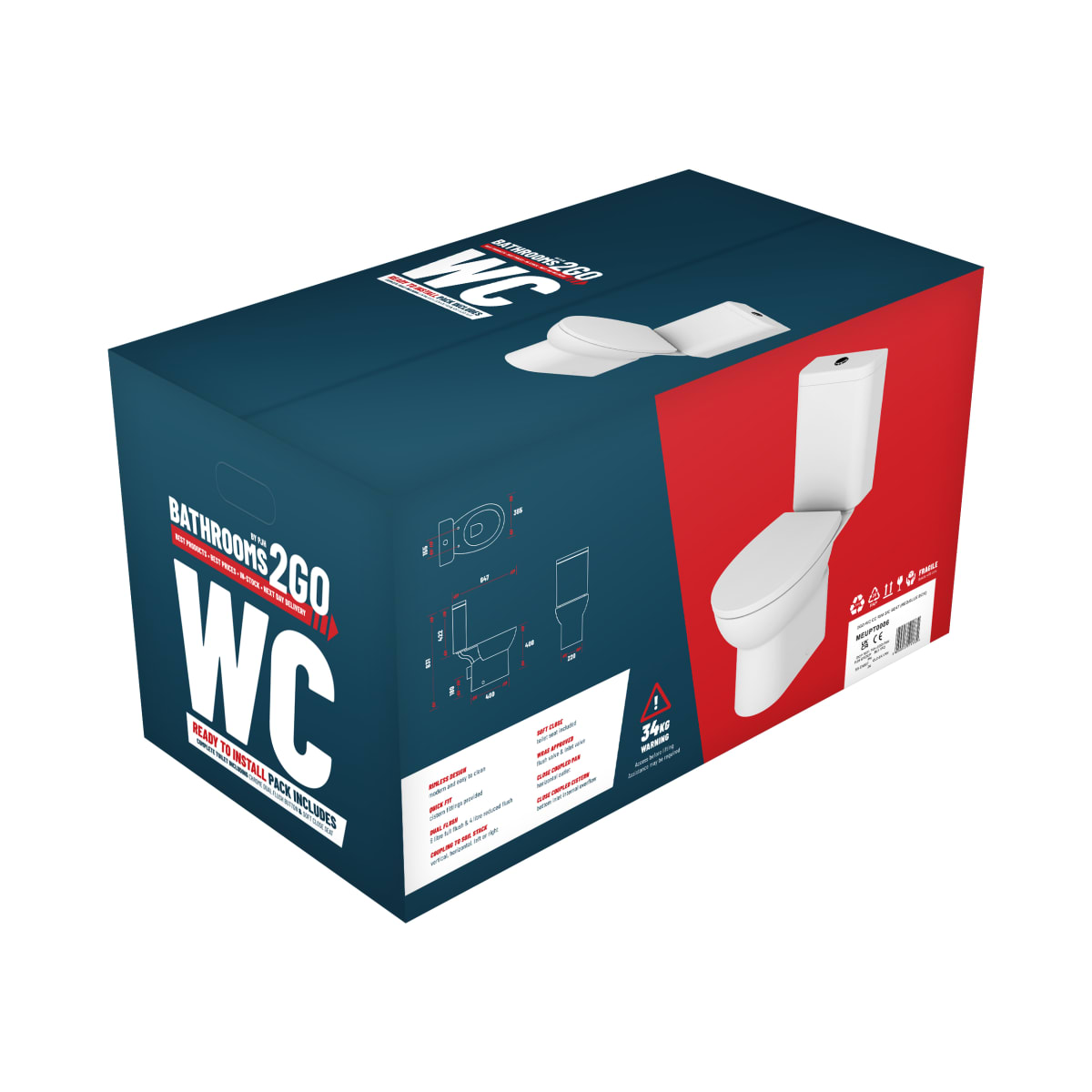 | Product Name | 2Go Close Coupled Rimless WC & Soft Close Seat |