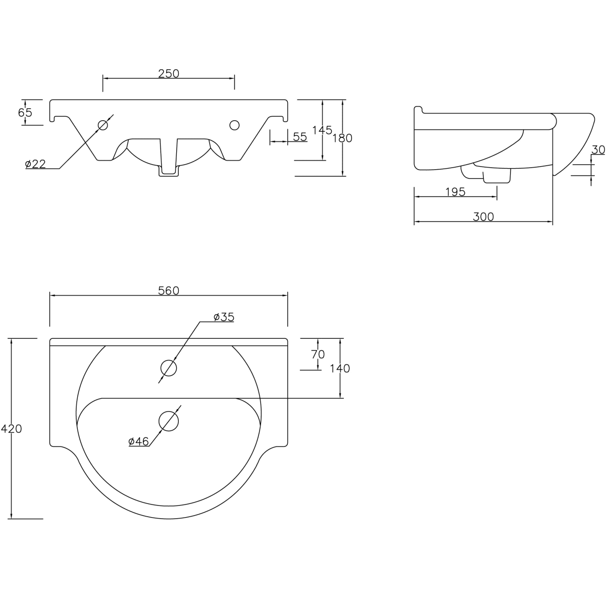 - 560mm Basin Unit & Basin - White Gloss