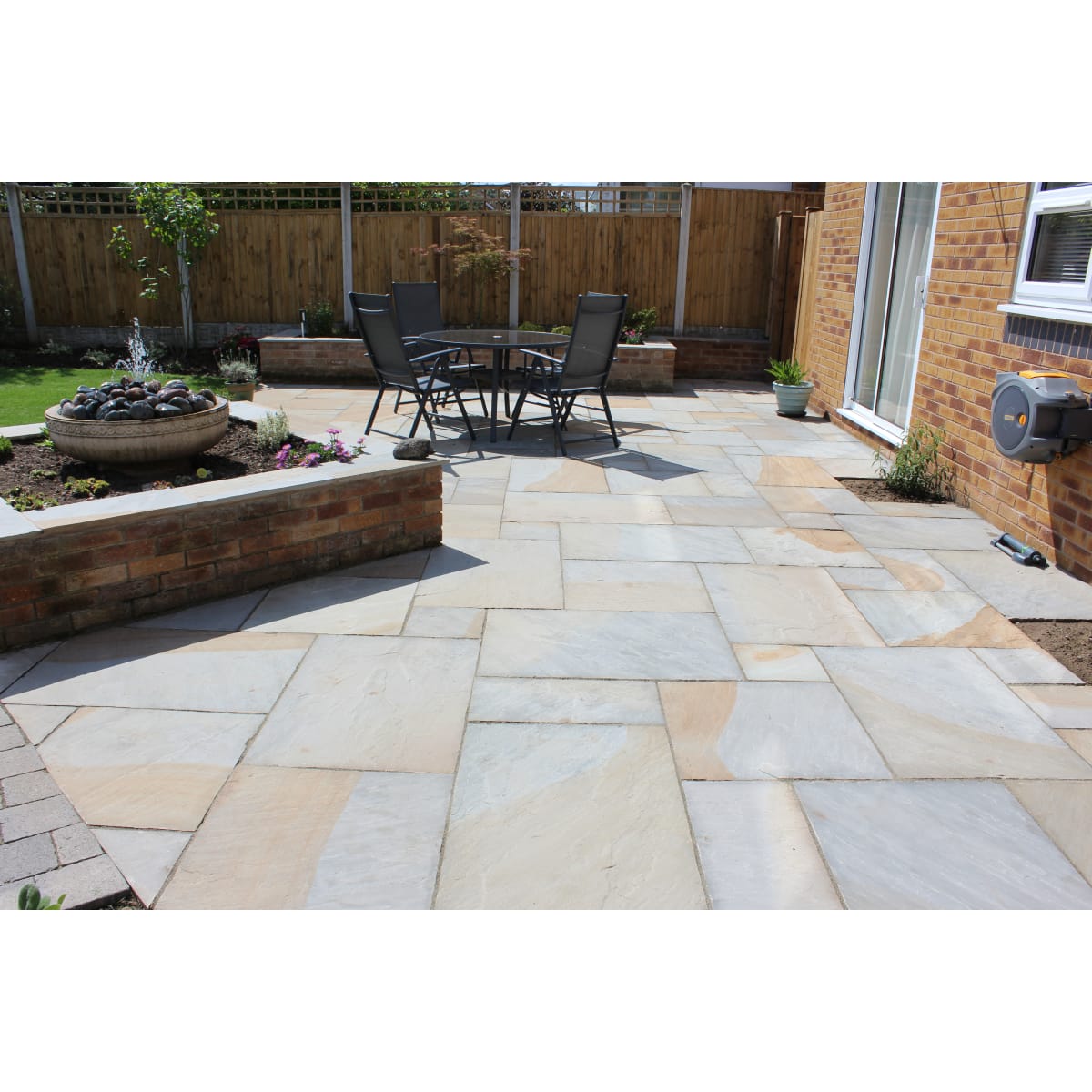 - With a striking mix of buff, brown and grey coloured flagstones, all packs should be opened and pieces mixed before installation, to prevent colour banding.