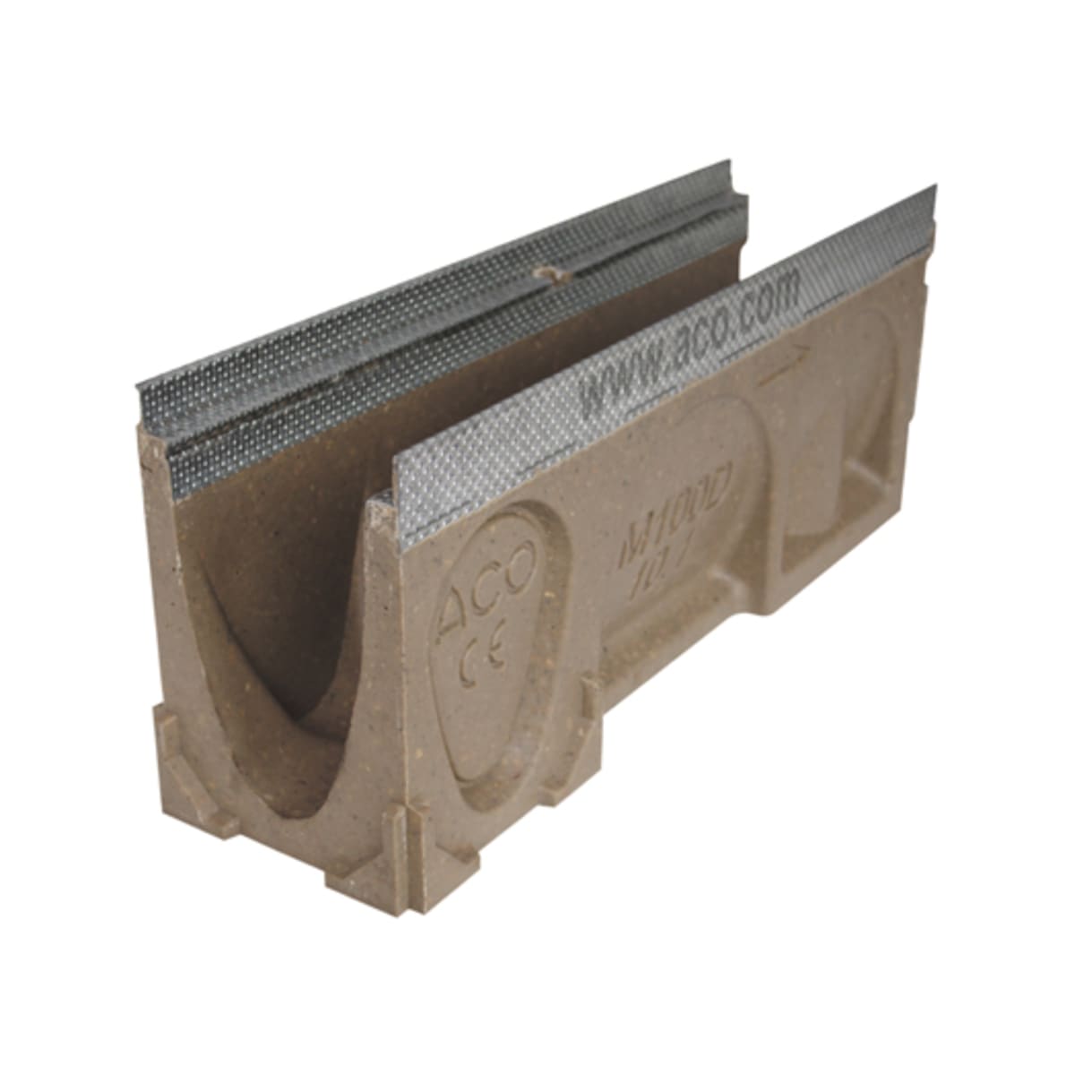 The ACO MultiDrain M100D No. 0.1J Channel Galvanised Rail 500 x 135 x 150mm (L x W x D), is manufactured from Vienite®, a polymeric based recycled material. Strong and lightweight design improves stability and anchors product into concrete surround, which provides high chemical resistance. Channel is provided with integral galvanised steel protective edge rails. For enhanced durability these rails are manufactured from UltraSTEEL™, a unique material that has improved strength over plain steel. Channels are for used with ACO Drainlock™ bar-less locking gratings and covers.