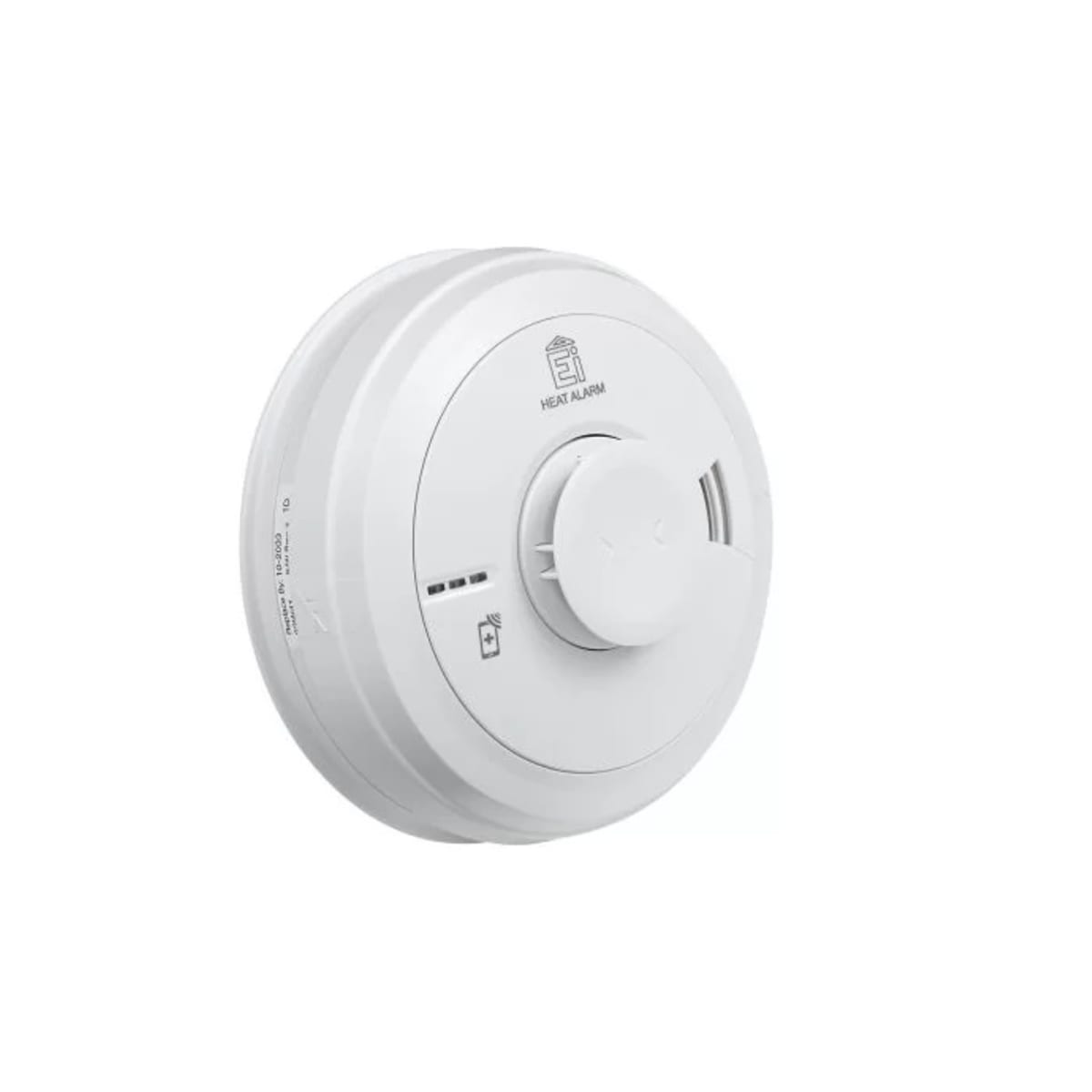 The Ei3014 65 x 150mm (D x Dia) is a mains-powered Heat Alarm with 10 Year Rechargeable Lithium Back-up.