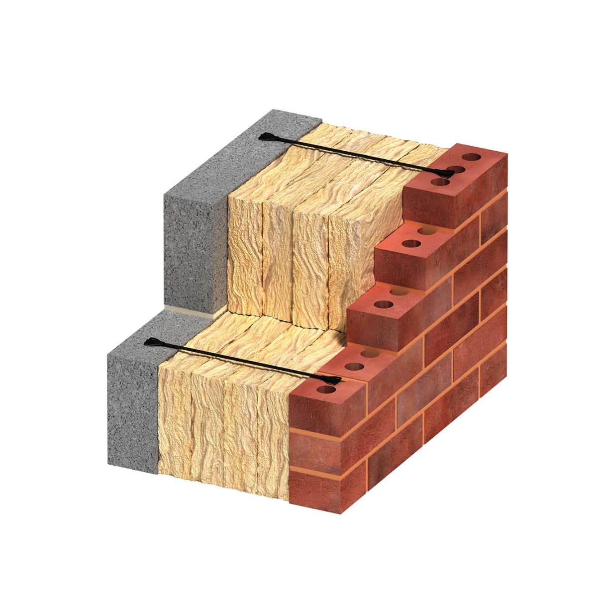 The Ancon Teplo-BF-2 300mm is suitable for cavities from 151-175mm and is manufactured from pultruded basalt fibres. This material has a thermal conductivity of only 0.7W/mK which can be shown in U-value calculations to reduce insulation thickness and wall footprint.