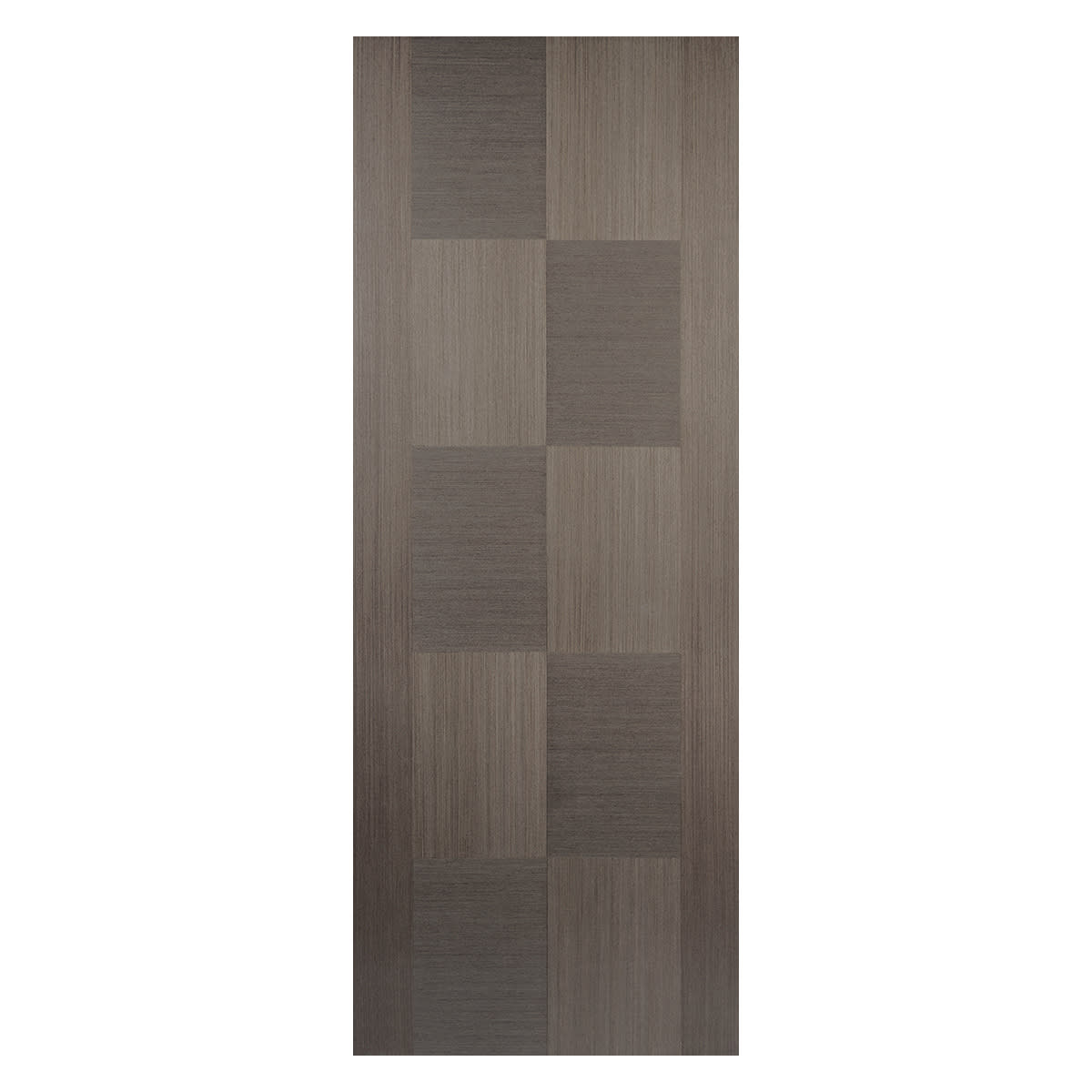 Effortlessly add a modern touch to any home with this pre-finished Chocolate Grey Apollo door, featuring a checkerboard style wood grain pattern.