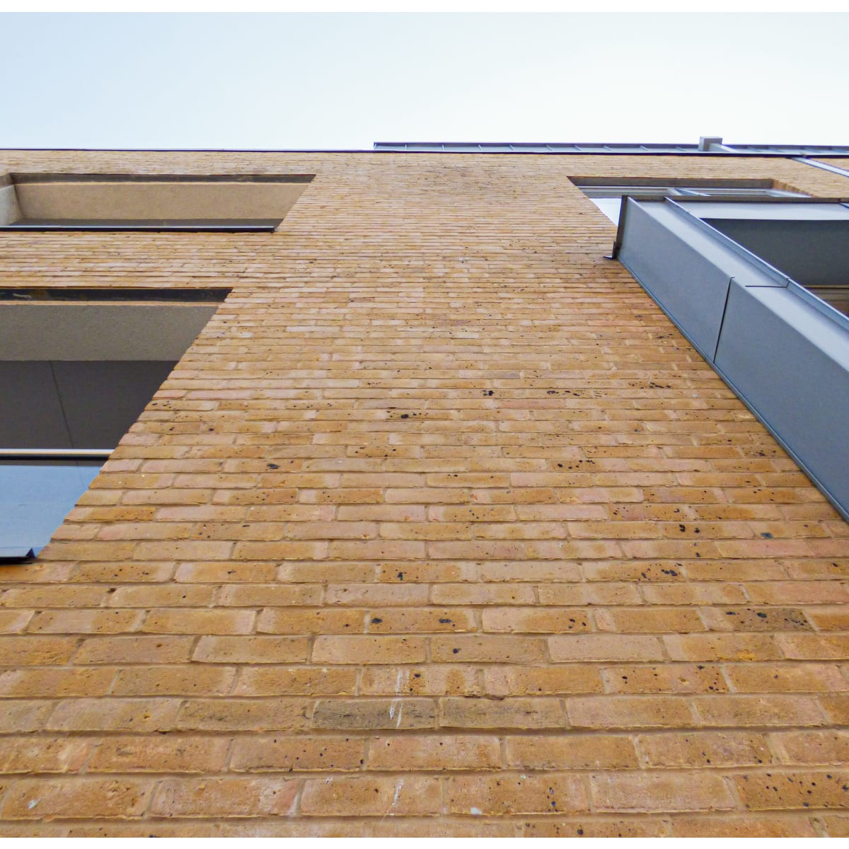 Kent Yellow from the The Bespoke Brick Company. This classic Yellow multi stock is a soft mud sanded texture brick. Formed using clay from a quarry or river which is then mixed with other raw materials such as sand, lava, lime, iron and chromi-um oxides. The clay is put through various processes to remove any unwanted aggregates or metals. It is then kneaded with steam and water before being thrown by machine into a “Deboer” press. The moulds are lined with a fine sand which gives these bricks their sanded texture. The shaped bricks are then dried before being fired in a tunnel kiln at temperatures ranging from 1070 -1250°c. The result is a crisp, square arris, through coloured, stock brick.