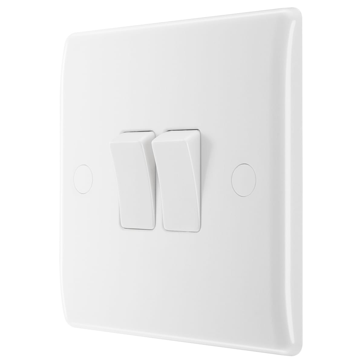 Electrics & Plumbing > Electrical > Switches & Sockets > BG 800 Series 20A Double Wall Light Switch White Moulded Round Edge