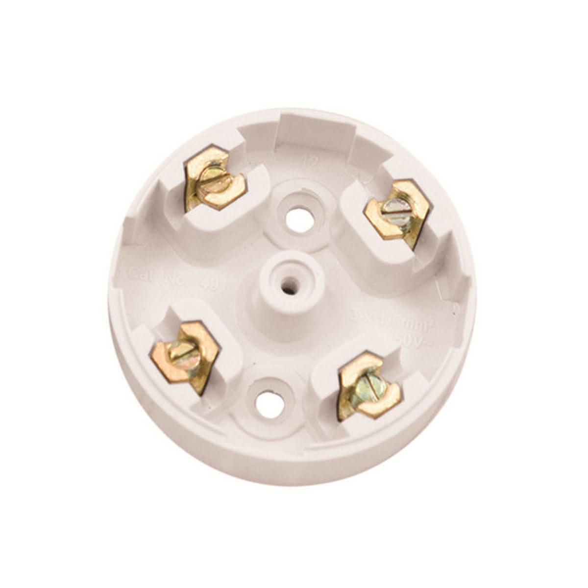 This white 4 way 20A junction box has a 2.5"/64mm diameter and knockout entries, and is primarily used to extend power and lighting circuits. This can also be used to repair damaged cables, preventing a full re-wiring of the circuit.