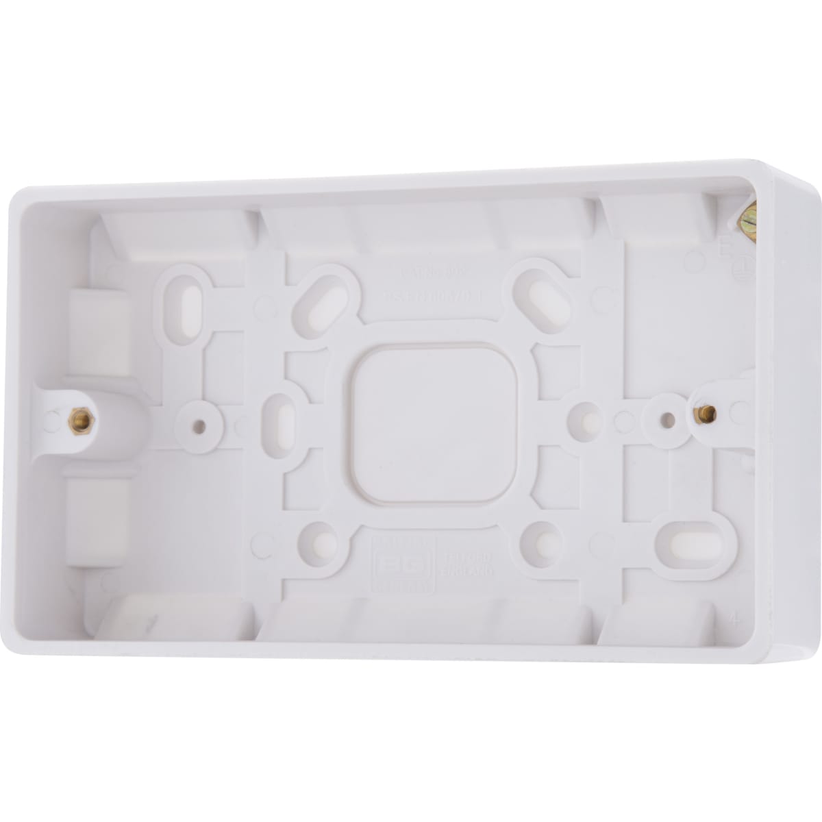- Double Surface Pattress Box: Compatible with wiring accessories from the BG Nexus 800 Series range. Rounded edges for a modern look.