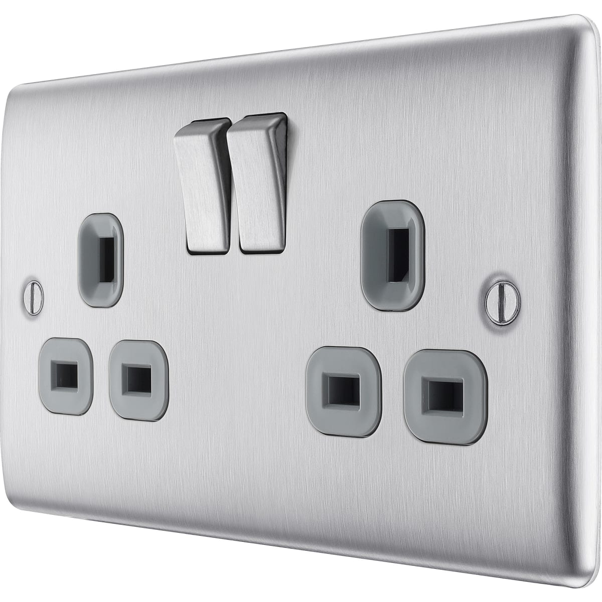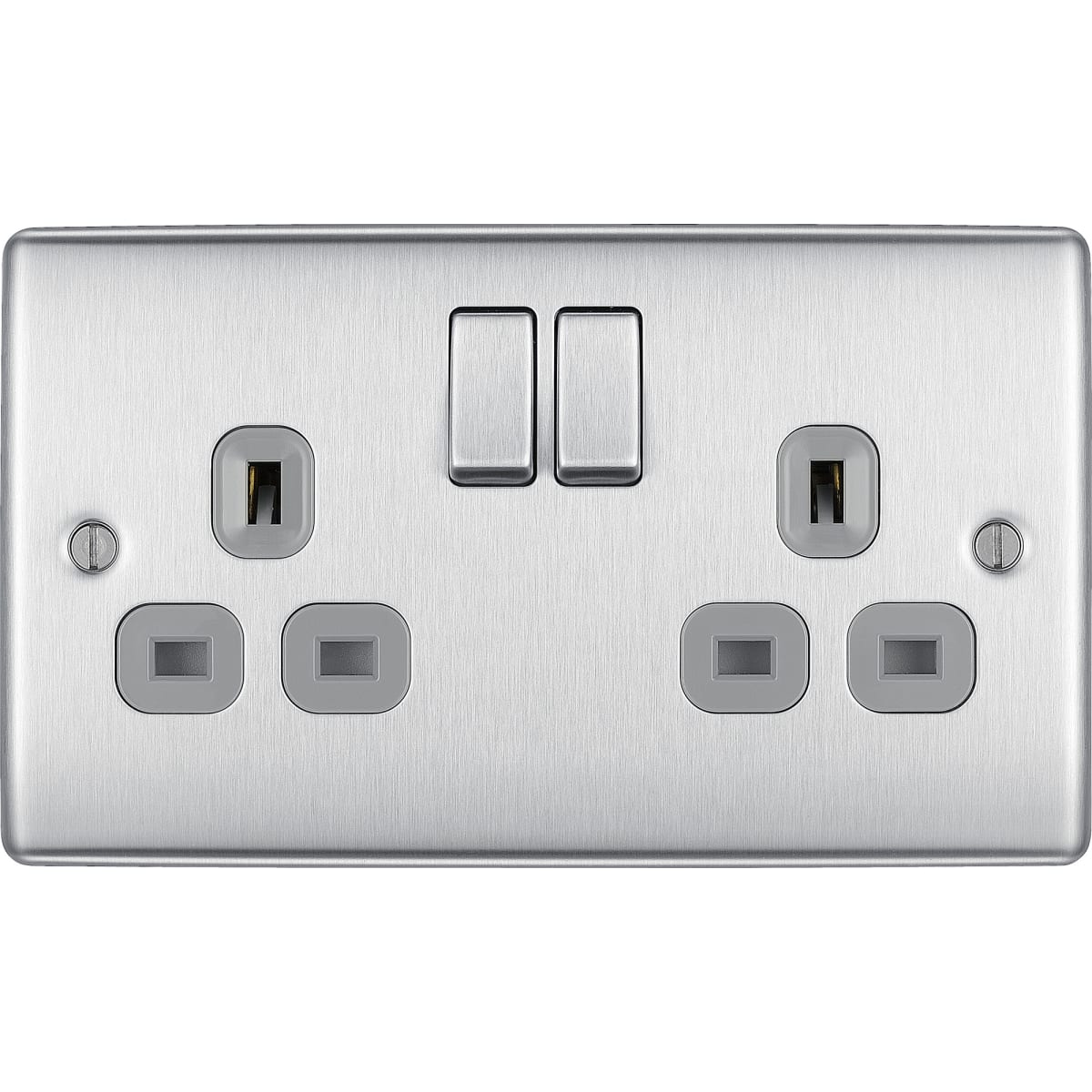 | Product Name | BG Nexus 13A Double Switched Socket Brushed Steel Grey Inserts |