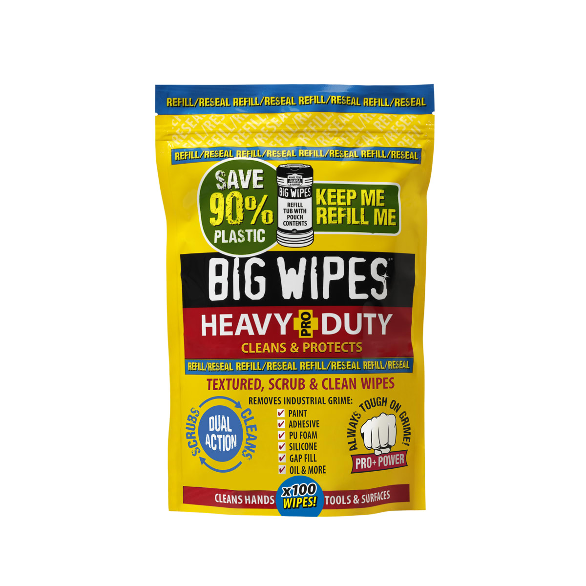 Tools & Fixings > Safety & Workwear > Cleaning Products > Big Wipes Heavy-Duty PRO+ Wipes Refill Pouch of 100