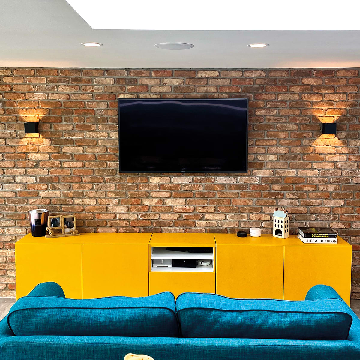 Blend 1 is a beautiful brown based brick slip from the reclaimed collection, the blend has variations from light brown to a reddish brown brick providing excellent variation. It is a tumbled brick slip so has different variations in texture and even shape, to make a completely unique final look on any feature wall, kitchen backsplash or in a fireplace. The sample panel contains 4 rows of the brick slips to show the full blend variation, but please use in conjunction with project photos to determine the ratios of these variations.