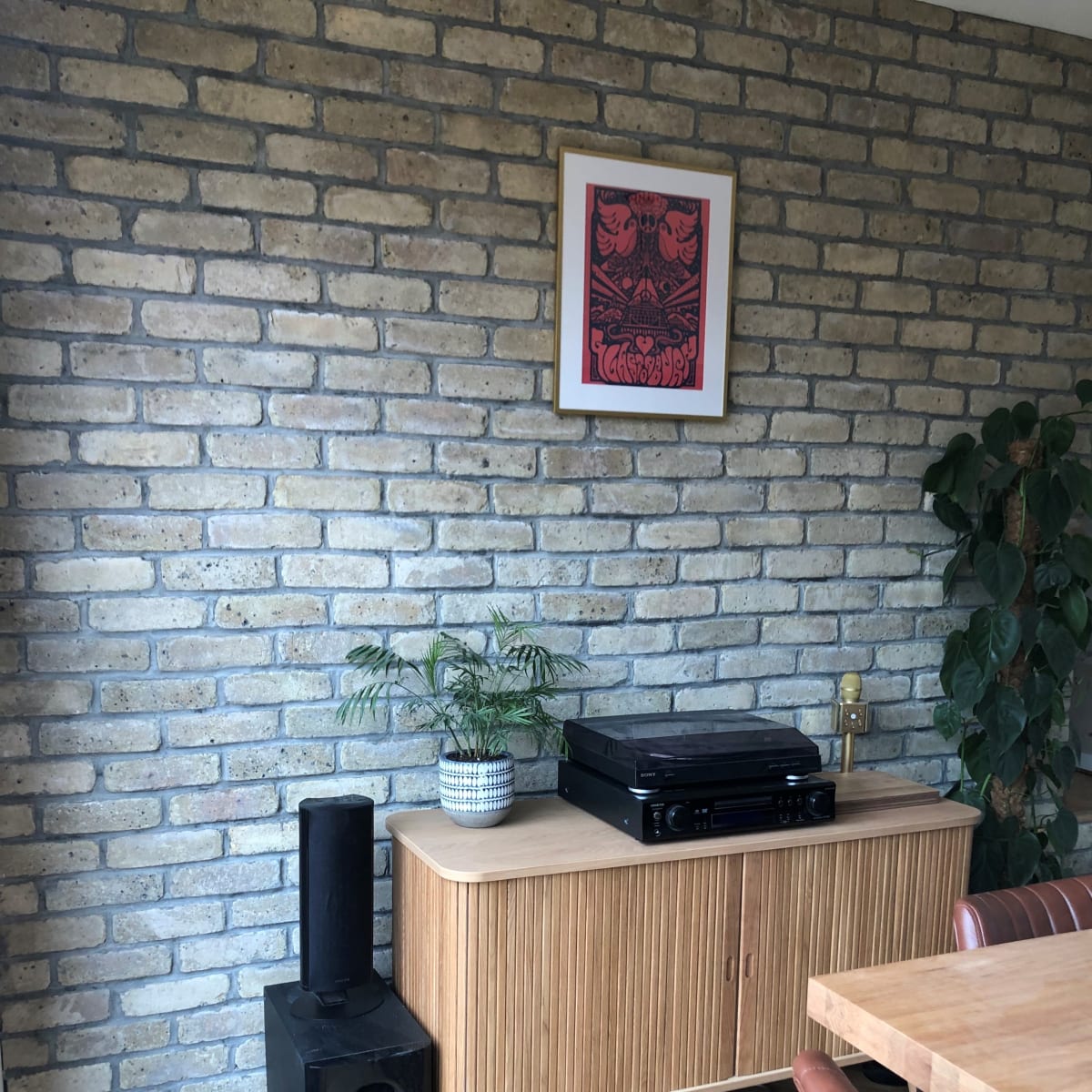 Blend 2 is a classic cream based brick slip from the reclaimed collection, the blend has variations from a light cream to a light yellow brick providing subtle colour variety, it has a small amount of mottling on the faces too. It is a tumbled brick slip so has different variations in texture and even shape, to make a completely unique final look on any feature wall, kitchen backsplash or in a fireplace. There are 35 tiles per box, which covers an area of 0.6m². We advise ordering an extra 10% to account for wastage when cutting or any breakages that occur.