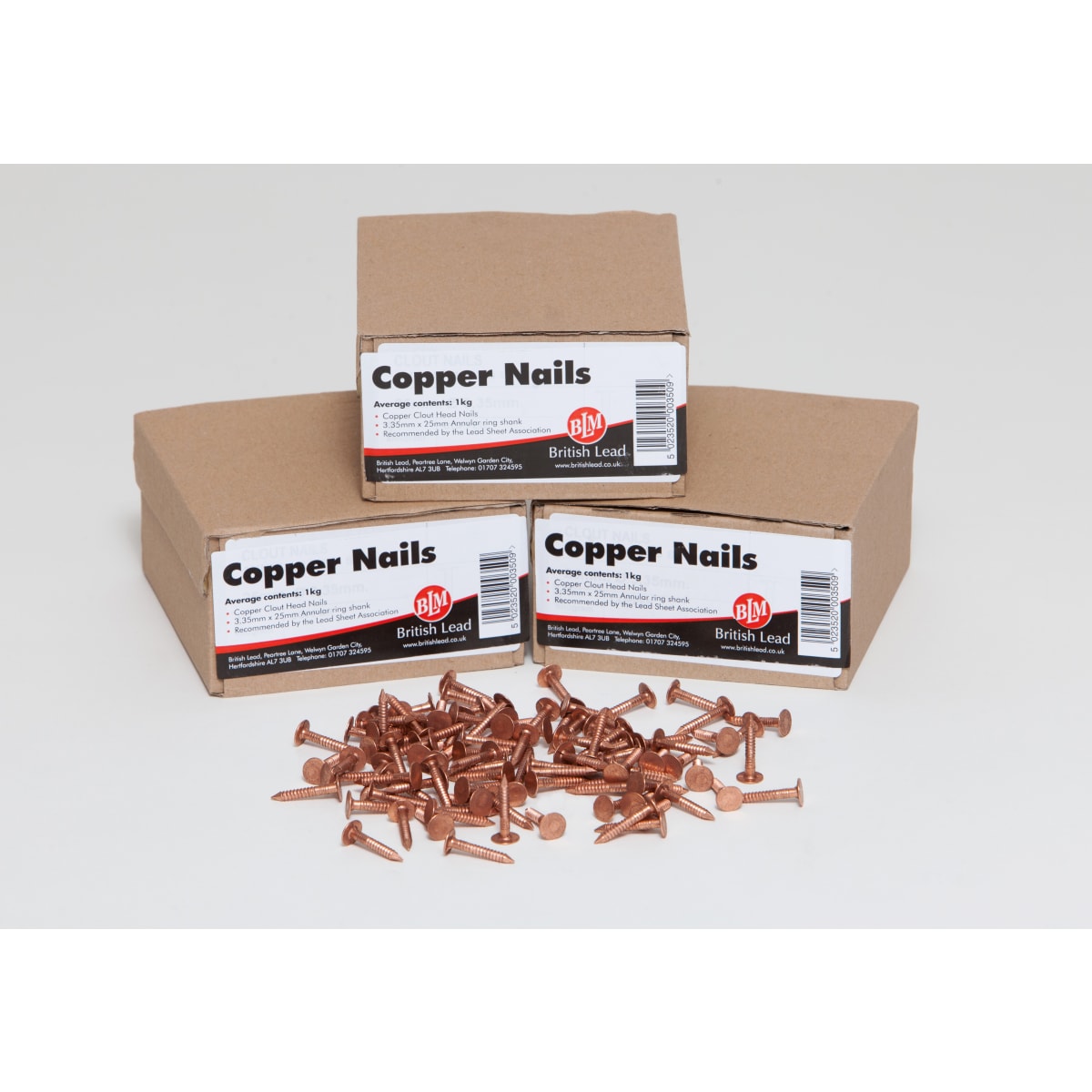 Building Materials > Roofing > Roof Flashings & Fixings > BLM Copper Annular Ring Shank Clout Nails 25mm Dia 350 Pieces 1kg