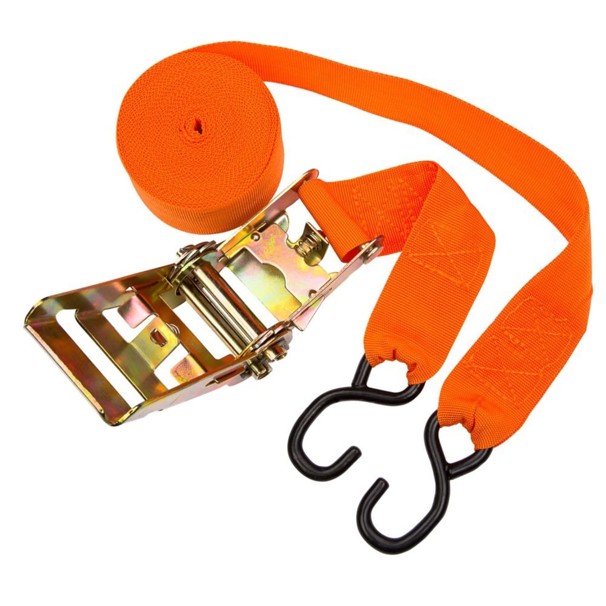BlueSpot Ratchet Tie-Down 25' x 2'' (L x W) is designed for moving household appliances, agriculture material, camping, outdoor equipment. This extra heavy duty strap can be used as boat straps or cargo tie down. It has maximum load capacity of 180kg and rated load capacity of 90kg. Features ratchet action that quickly tightens the belt to the load.
