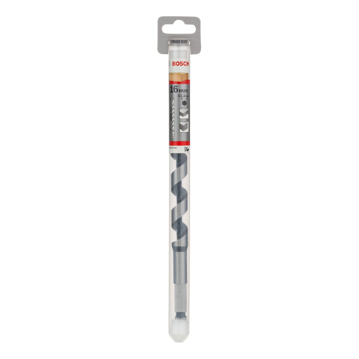 Bosch Auger Bit 235 x 16mm (L x Dia) comes with working length of 170mm. The drill bit has an optimised scoring spur that provides accurate holes. Designed with a hexagonal shank system, the drill bit works with all drill drivers that has a 13mm chuck.