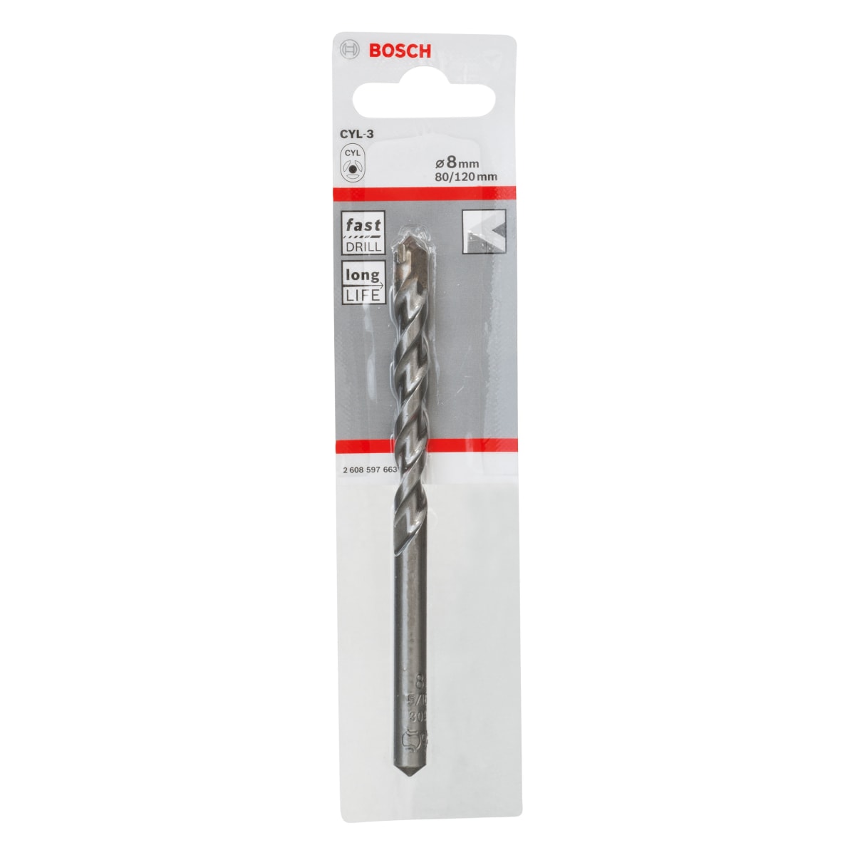 Bosch Drilling Cylinder 3 Concrete Percussion Bit 8mm Silver