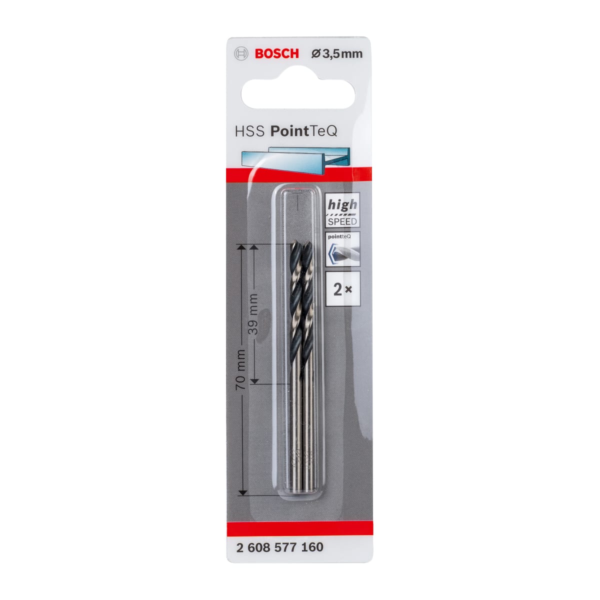 Bosch HSS PointTeQ Twist Drill Bit 70 x 3.5mm Pack of 2 Chrome