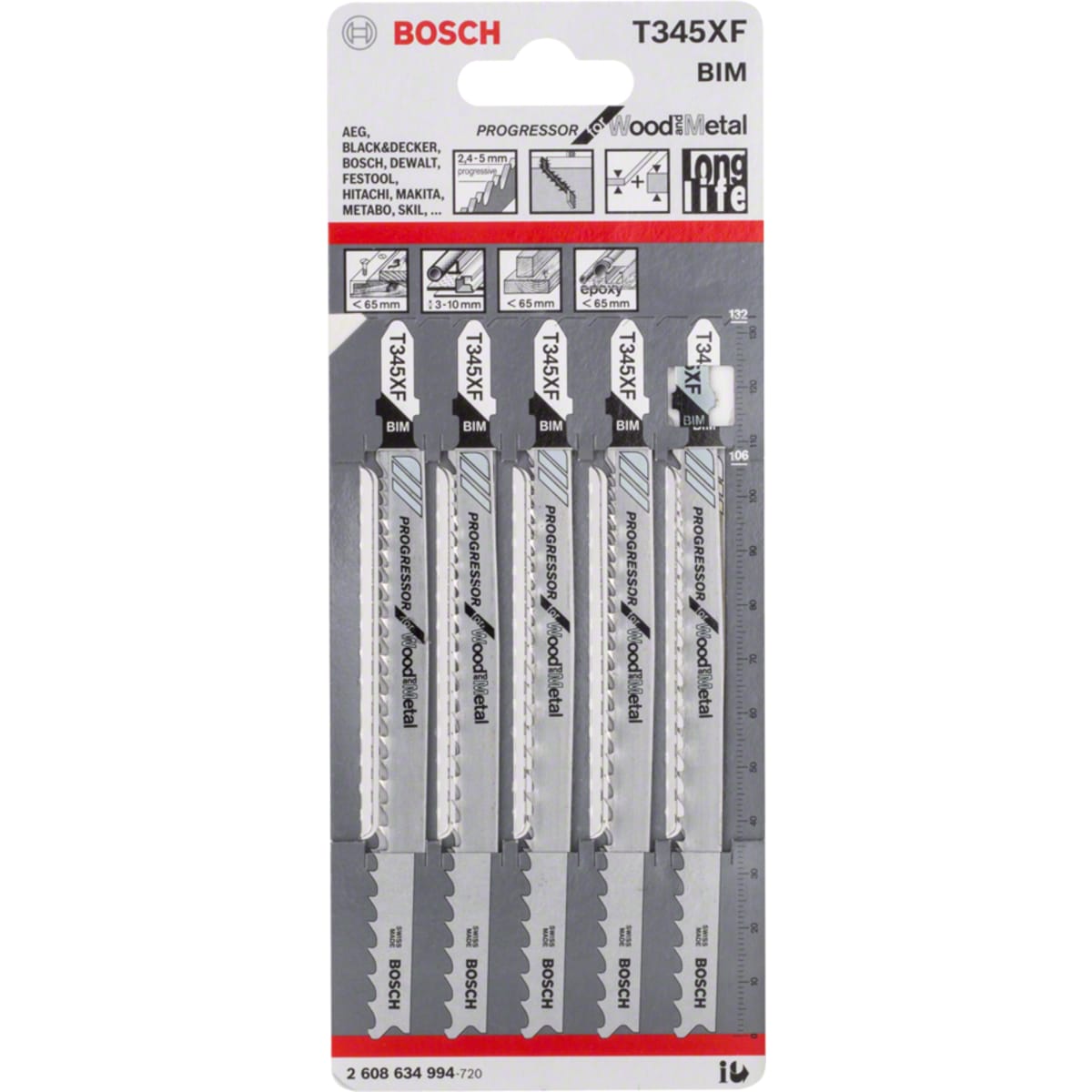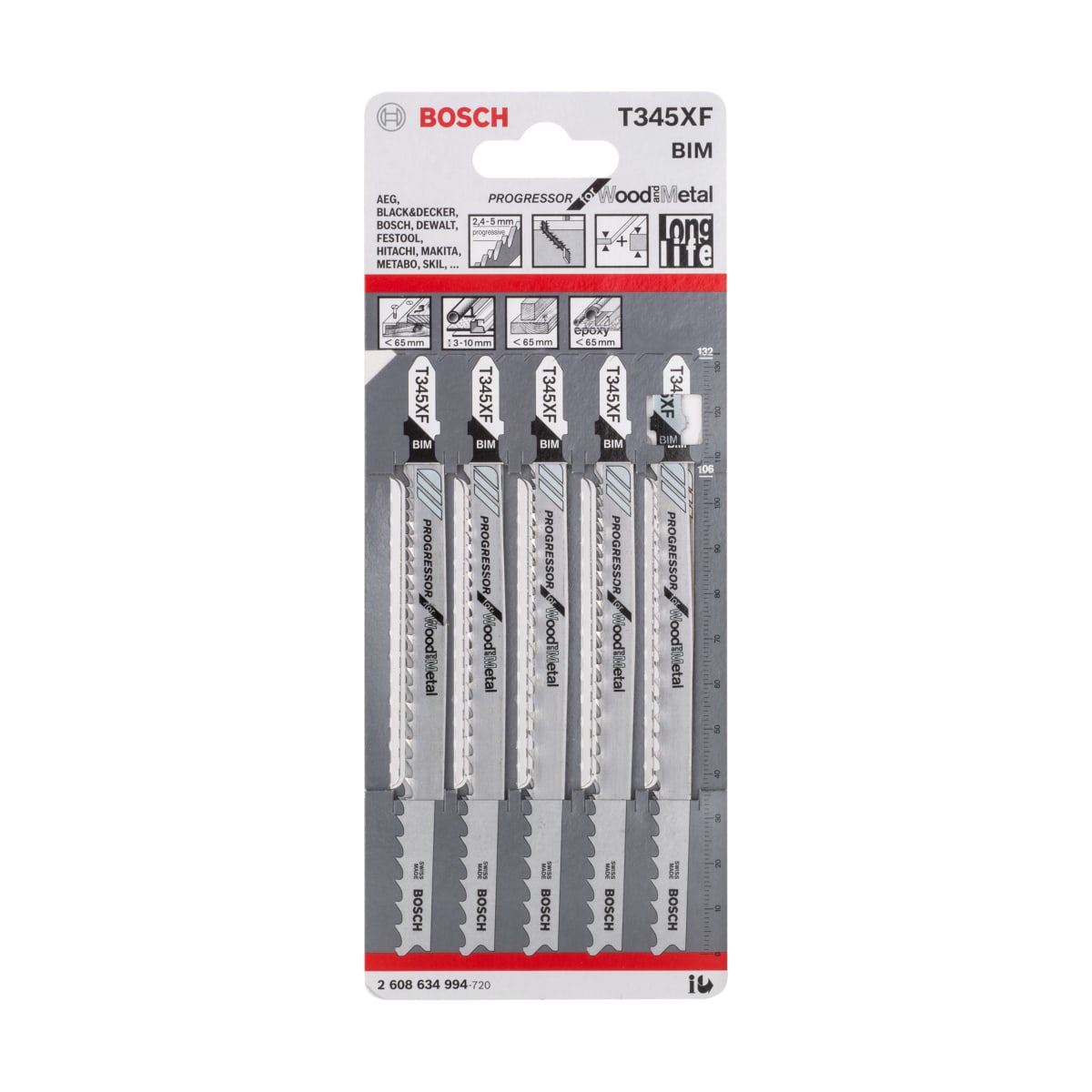 | Product Name | Bosch T345XF Jigsaw Blade 132mm L Chrome |