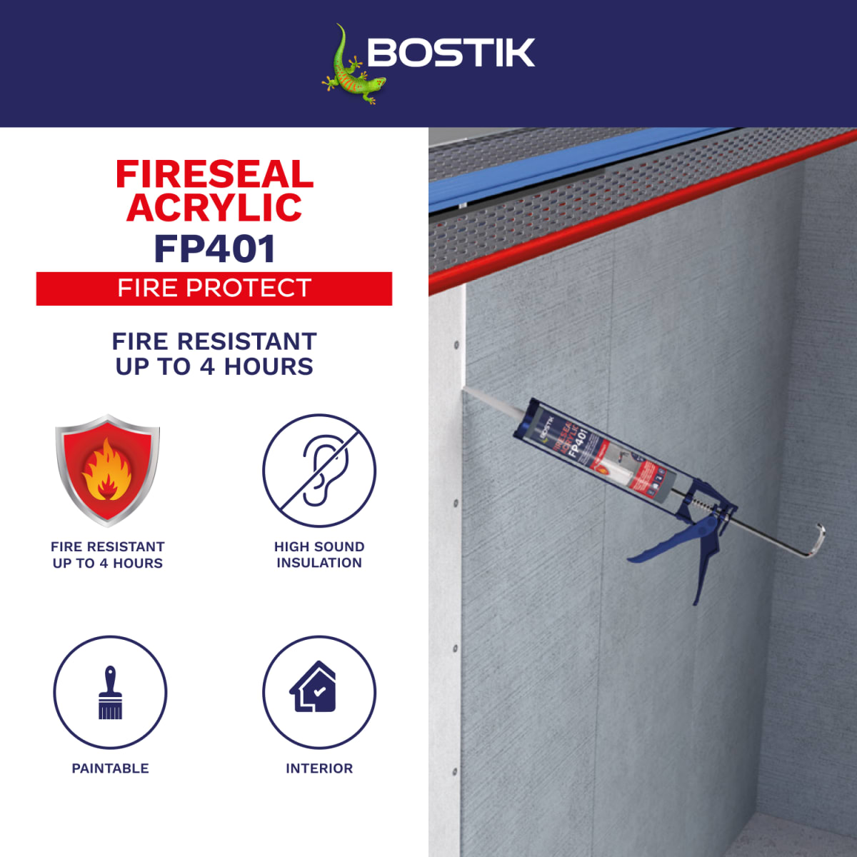 Bostik FP401 Fireseal Acrylic Sealant is a one-component, fire resistant acrylic sealant.