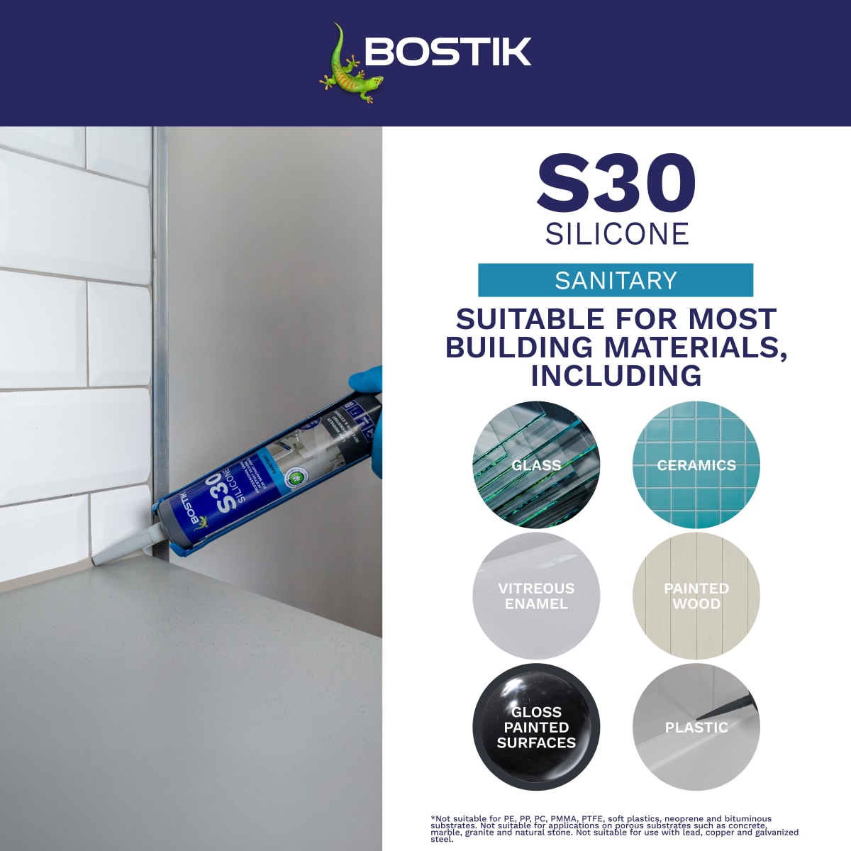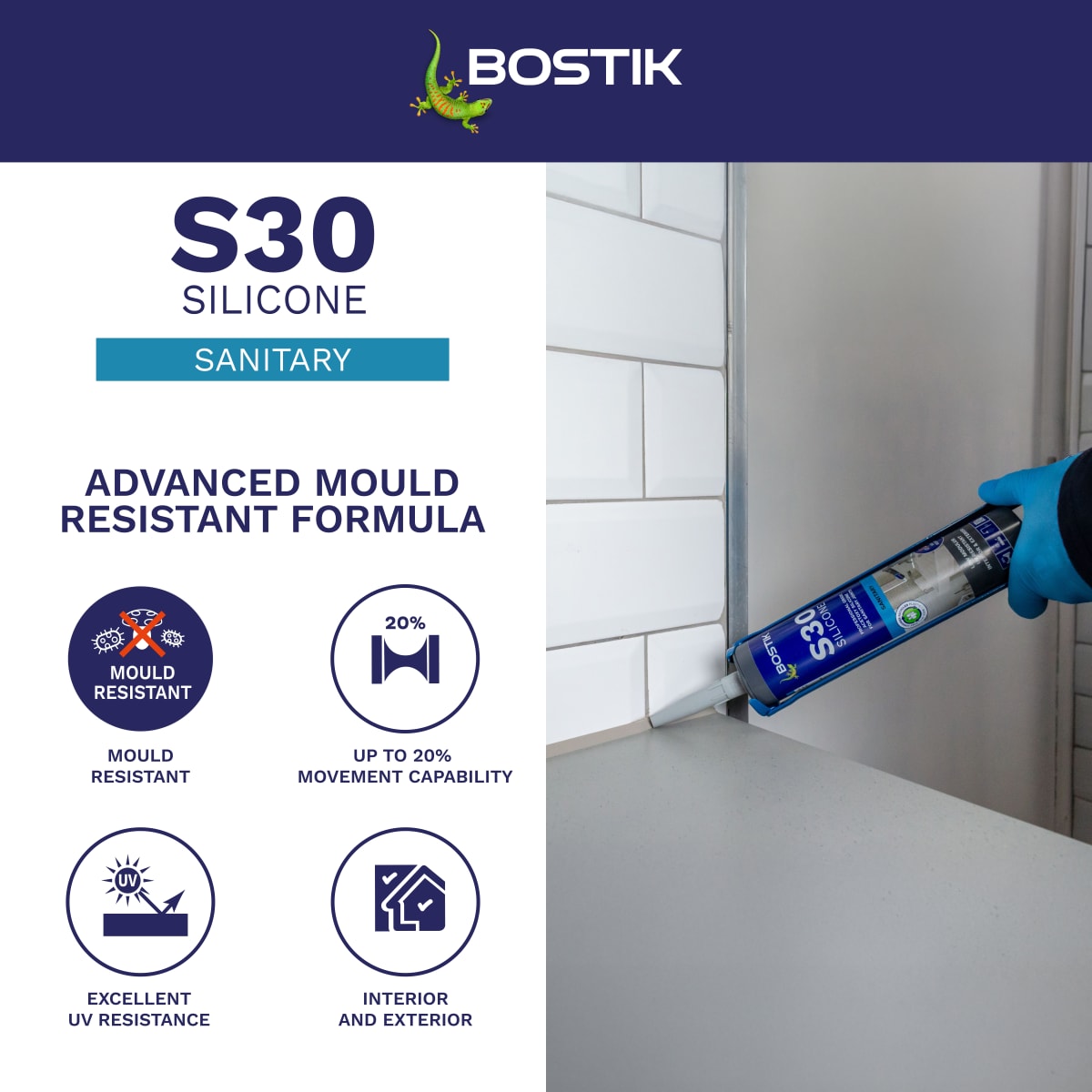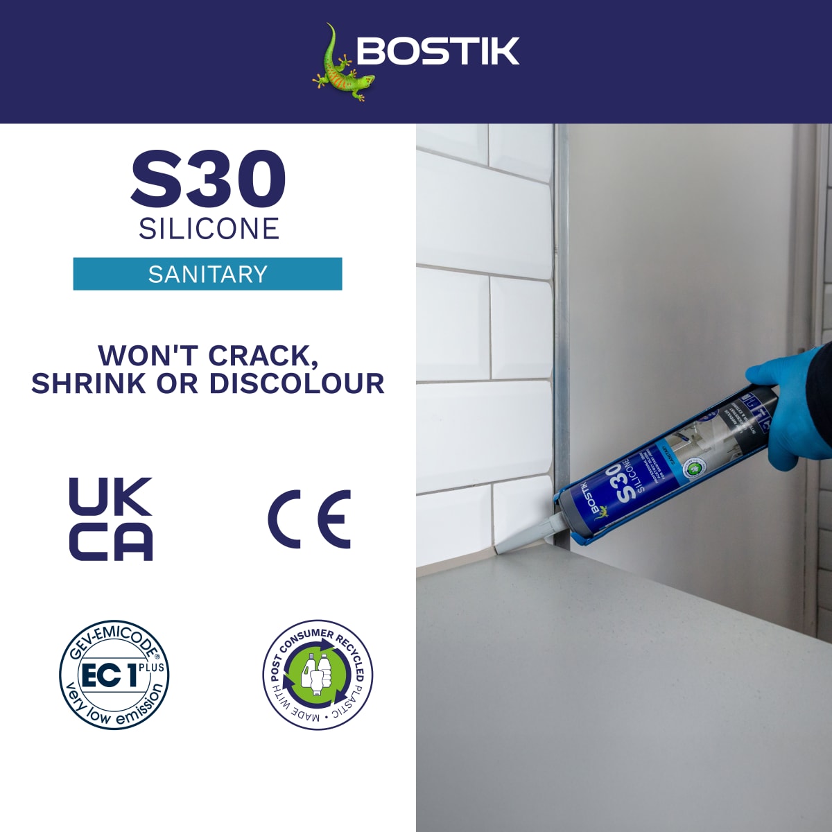 Bostik S30 is GEV EMICODE EC1 PLUS certified for very low emissions. It's also suitable for interior and exterior use, with excellent UV resistance, and is supplied in a post-consumer recycled (PCR) cartridge.