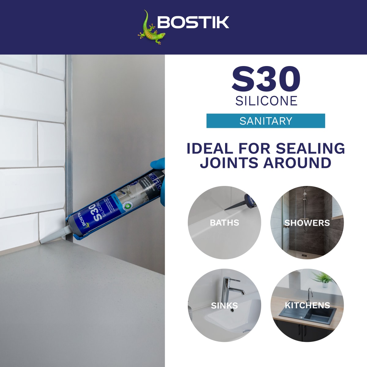 Bostik S30 Acetoxy Sanitary Silicone Sealant is a professional grade, grey acetoxy silicone sealant developed for sealing sanitary joints.