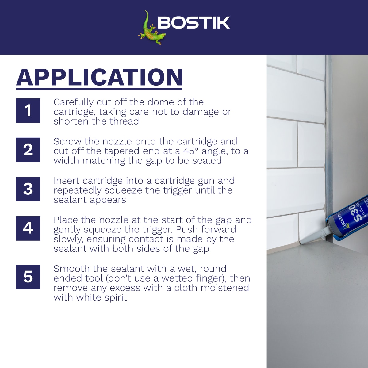 Sanitary joints are continually exposed to moisture and humidity. This acetoxy silicone sealant adheres well with ceramic, enamel and glass joints, and cures under humidity, making it ideal for sealing joints around baths, sinks, toilets, showers, kitchen furniture etc.