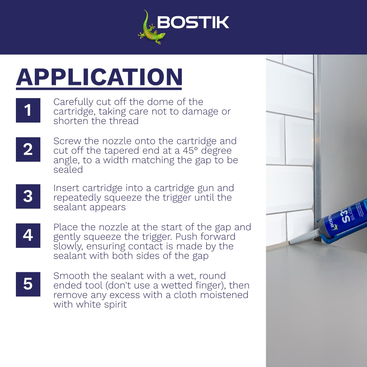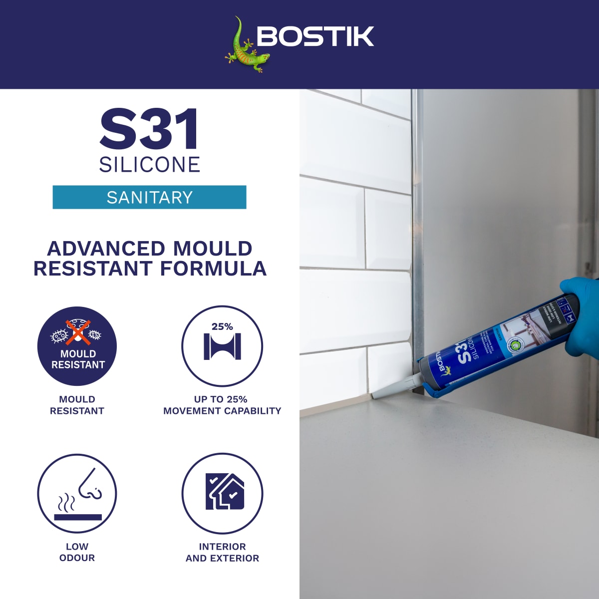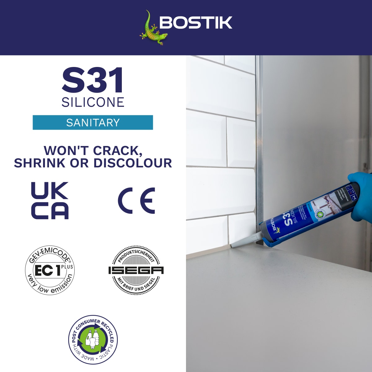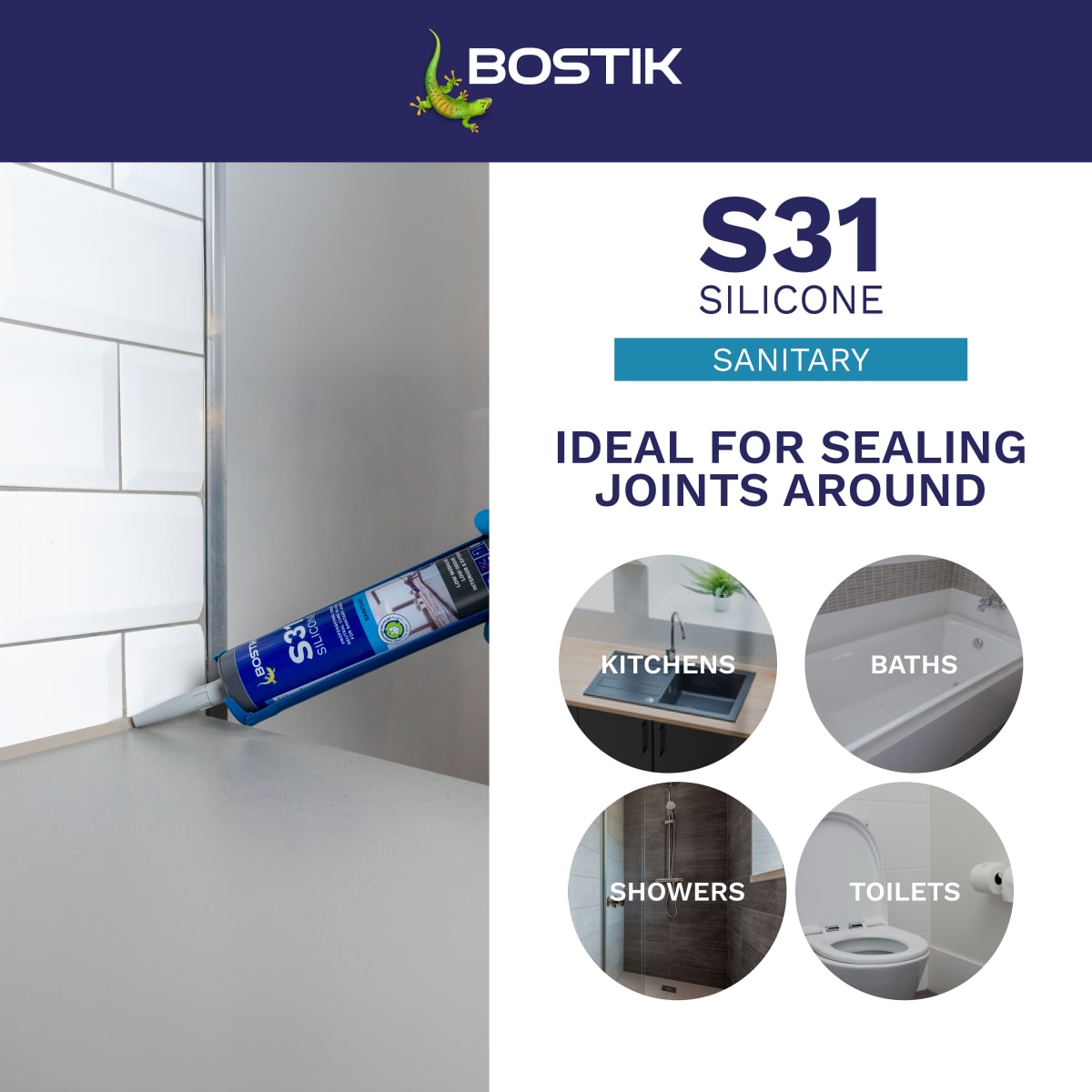 Bostik S31 Neutral Cure Sanitary Silicone Sealant is a professional grade, neutral cure silicone sealant developed for sealing sanitary joints.