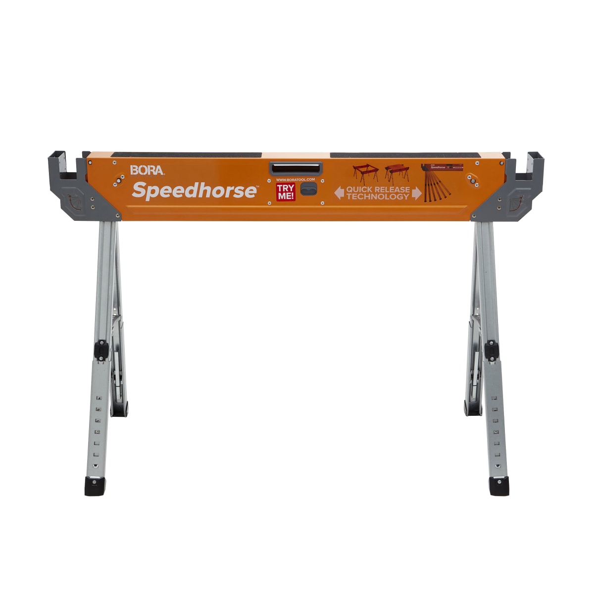 The ultimate upgrade for your job site, workspace, or workshop. Save precious time off site setup and teardown so you can get to work and complete jobs faster and more efficiently. The Speedhorse deploys 30 x faster than conventional sawhorses; just pull the release button in the middle of the frame.