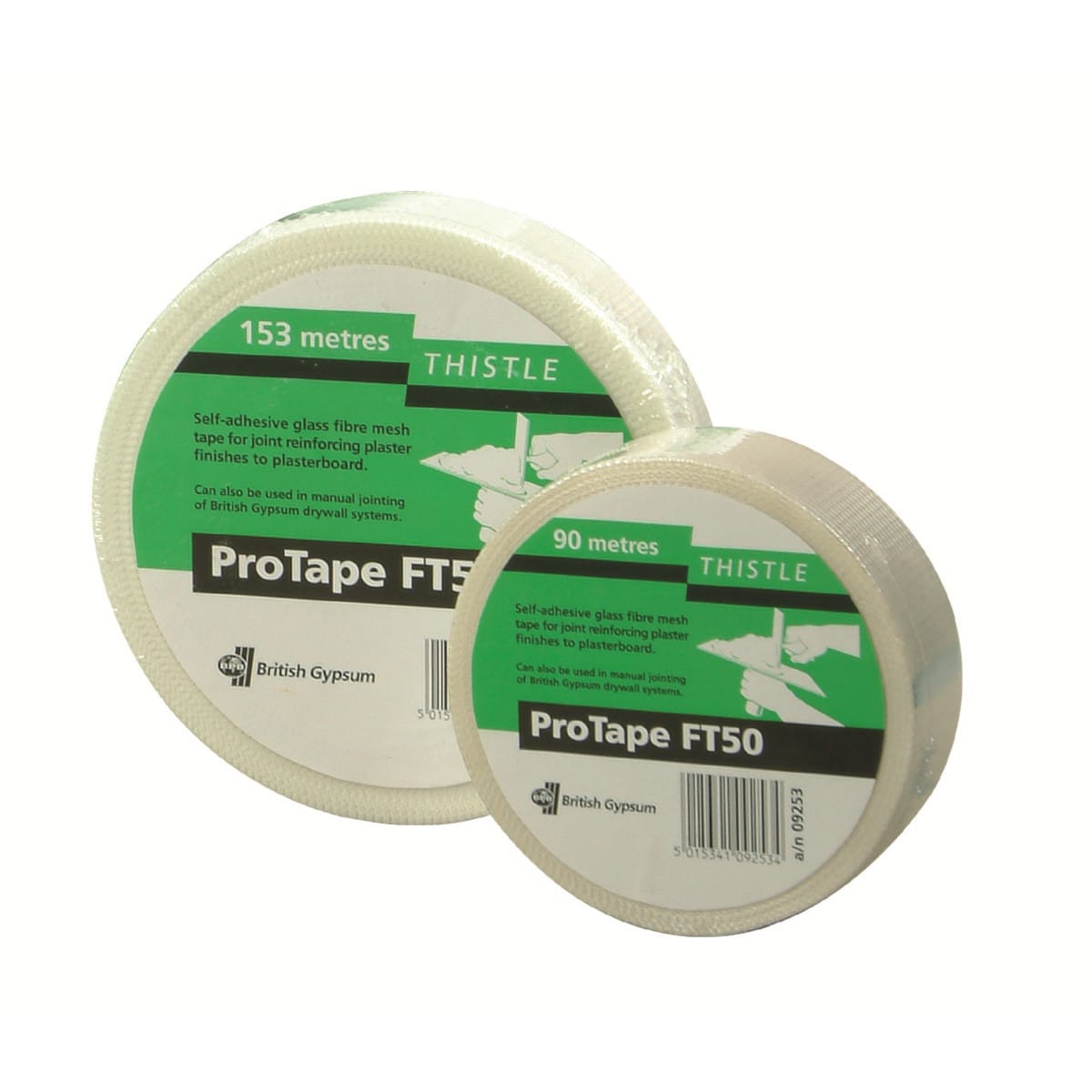 Thistle ProTapes are self-adhesive glass fibre mesh tapes applied to reinforce plasterboard joints when skimming or jointing.