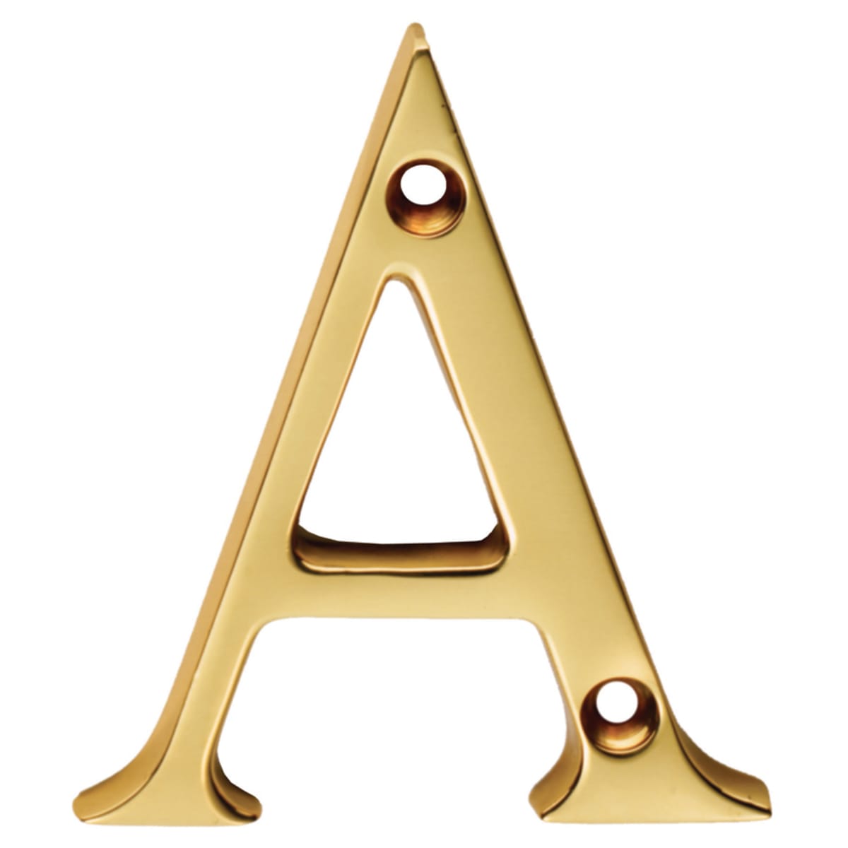 Doors & Joinery > Ironmongery > Fittings & Accessories > Carlisle Brass Letter Face Fix Letter 'A' 53mm Polished Brass