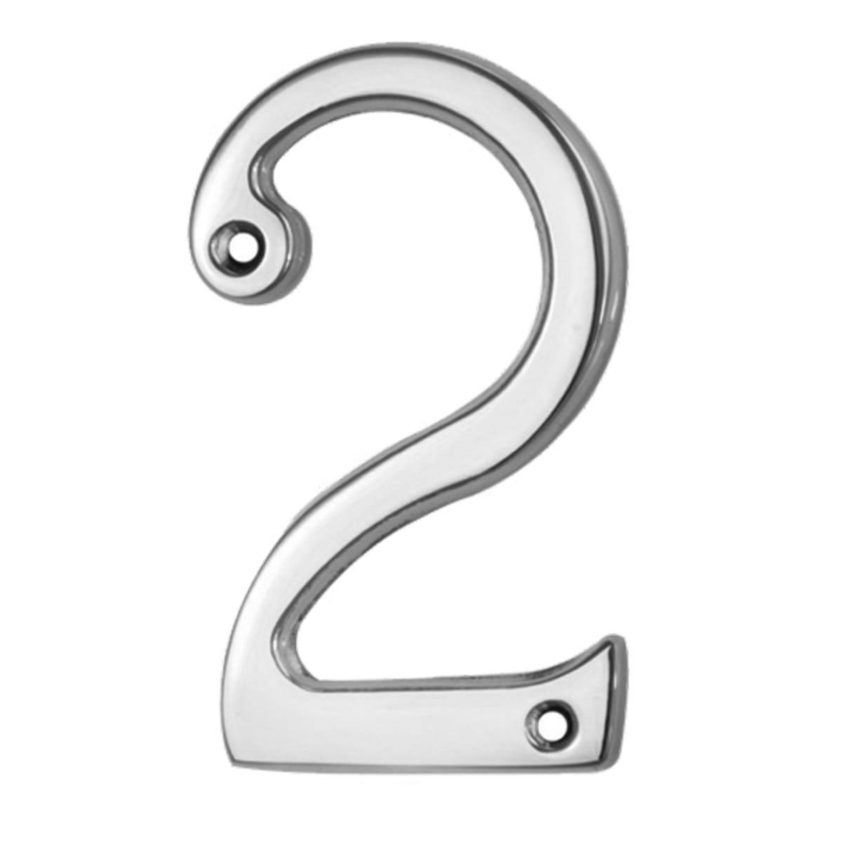 Carlisle Brass Numeral '2' Face Fix Number 75 x 44 x 4mm (L x W x T) Polished Chrome is an external door numeral. The face fix number is used to notify what post number the house is. The round ended type face provides clarity at a distance.