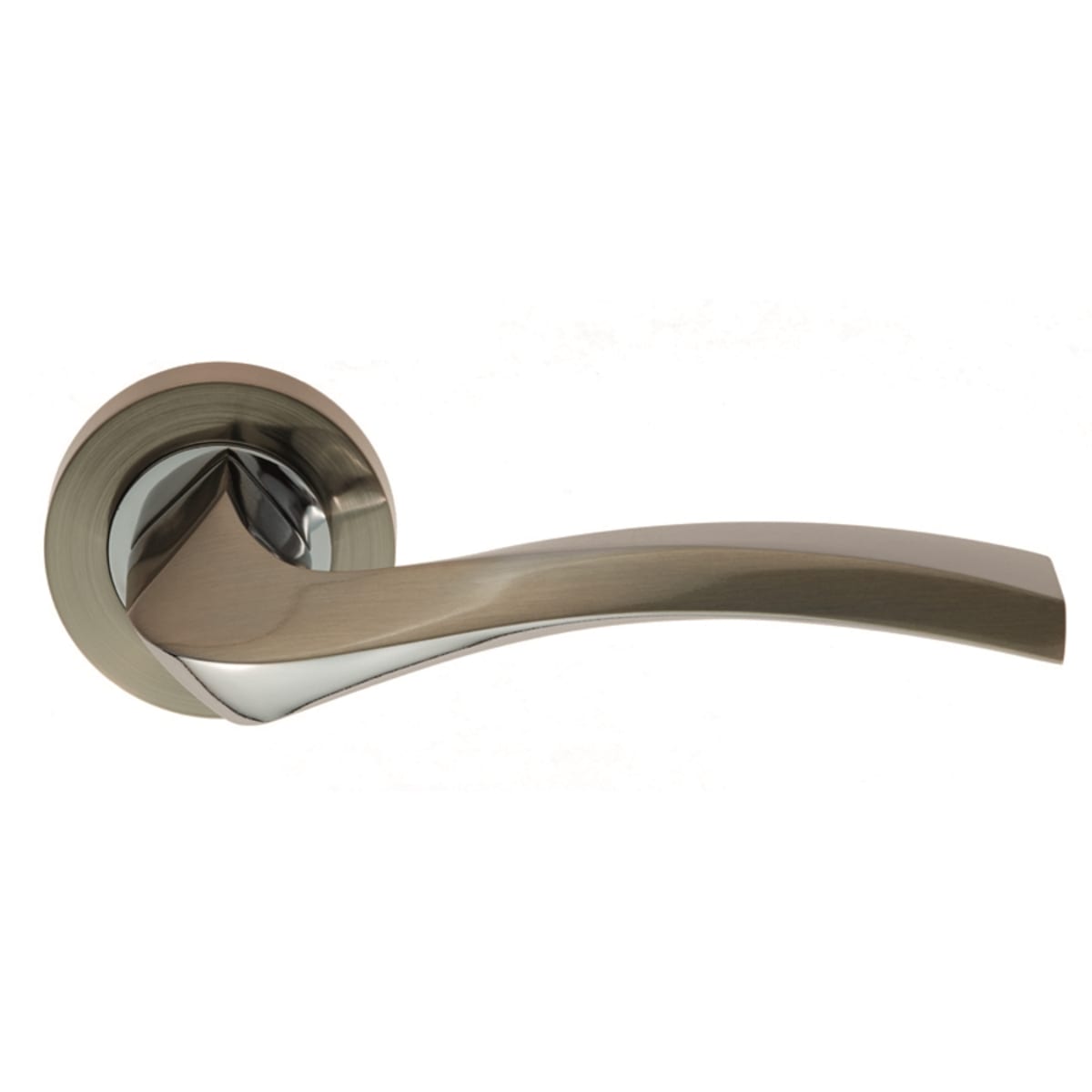 The Sines Designer lever latch handle pack includes a pair of Sines lever handles, a pair of ball bearing butt hinges and a bolt through tubular mortice latch. The Sines design is a curved angular lever on a round rose. Dual finish Satin Nickel and Chrome Plated.