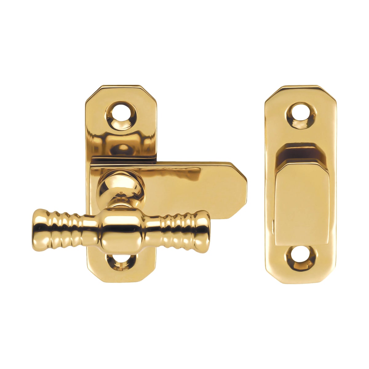 Carlisle Brass T-Handle Fastener is used to link casements together in closed windows. It is available in yellow colour and measures 57 x 18.5mm (L x W). The product can only be used as an additional lock or holder for the window and not as the primary lock. The product is made from stainless steel and the polished brass finish gives the product a premium look. This can be used in wardrobes and cabinets. The screw holes are machine cut to ensure superior grip and safety. The T-stem makes operation easier. The stem also helps in holding the lever in a fixed position, ensuring proper locking function.
