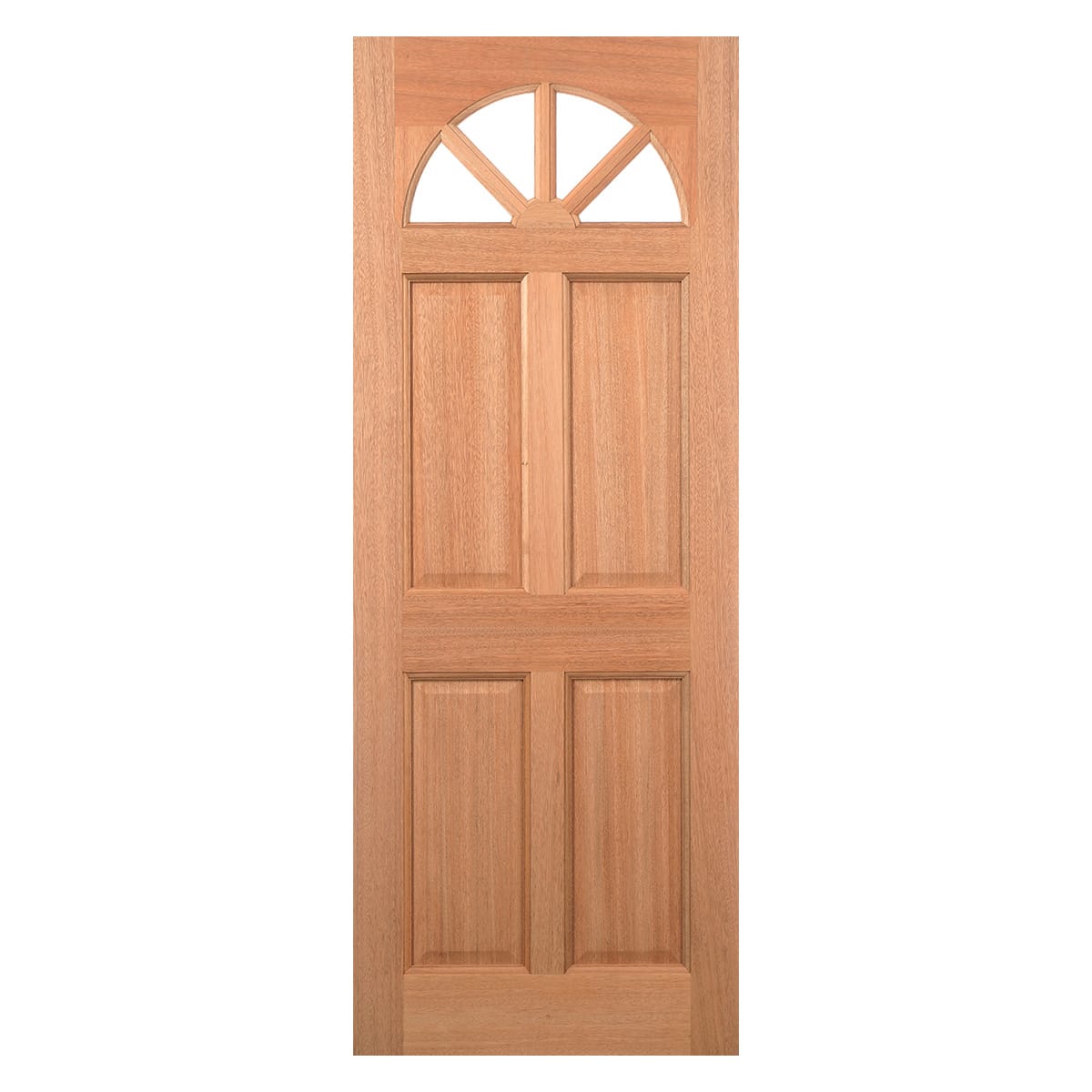 Made from a hardwood material, this Carolina door features clear double glazed panels with a rounded top edge and four raised shaped panels.