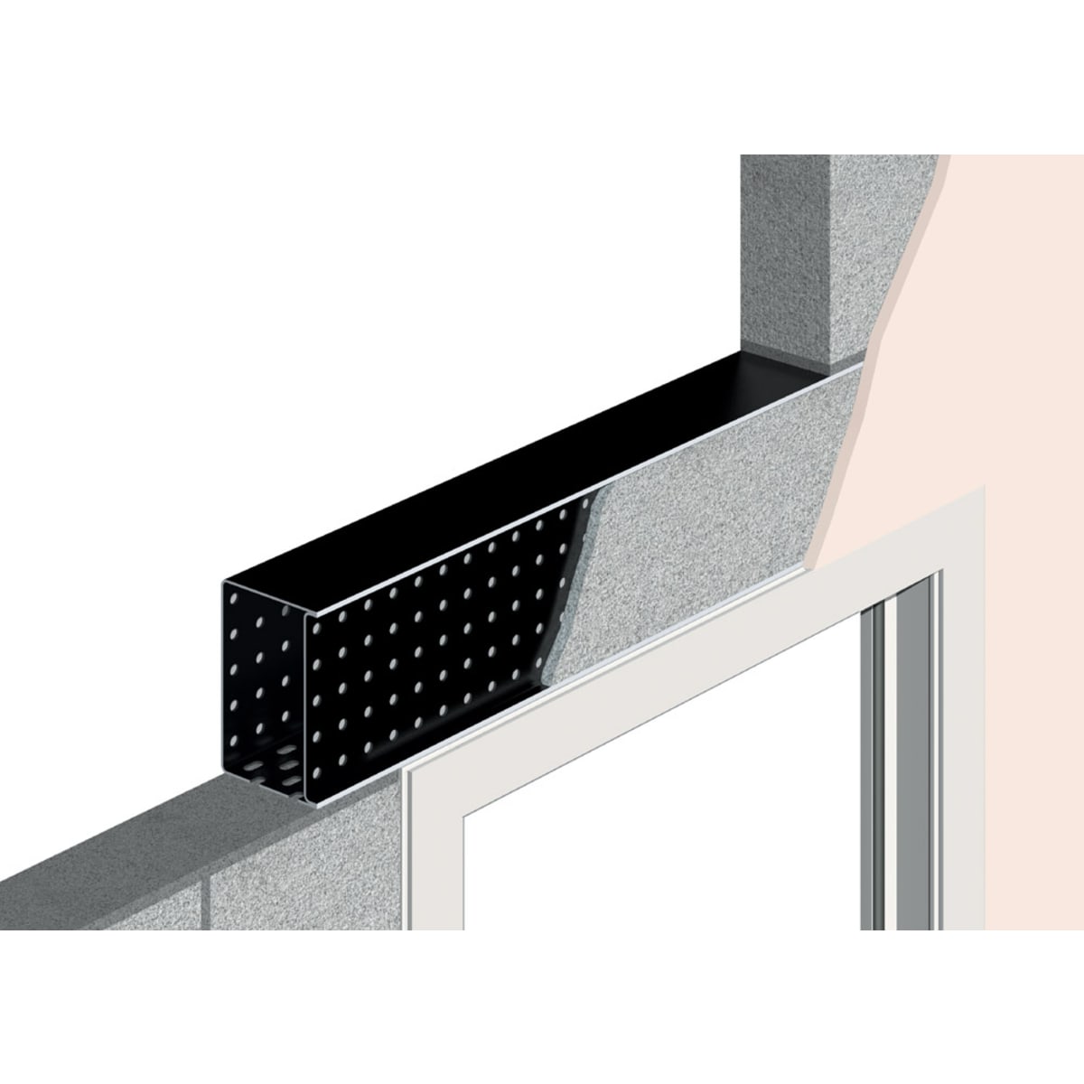 Catnic 100 Wide Box Heavy Duty Lintel 1500 x 143 x 100mm (L x H x W) Galvanised, manufactured from steel and comes with duplex corrosion protection. This lintel is used for 100mm interior solid walls. The integral plaster key feature minimises cold bridging without affecting the structural performance. The build in DPC prevents water seeping to be disposed of externally.
