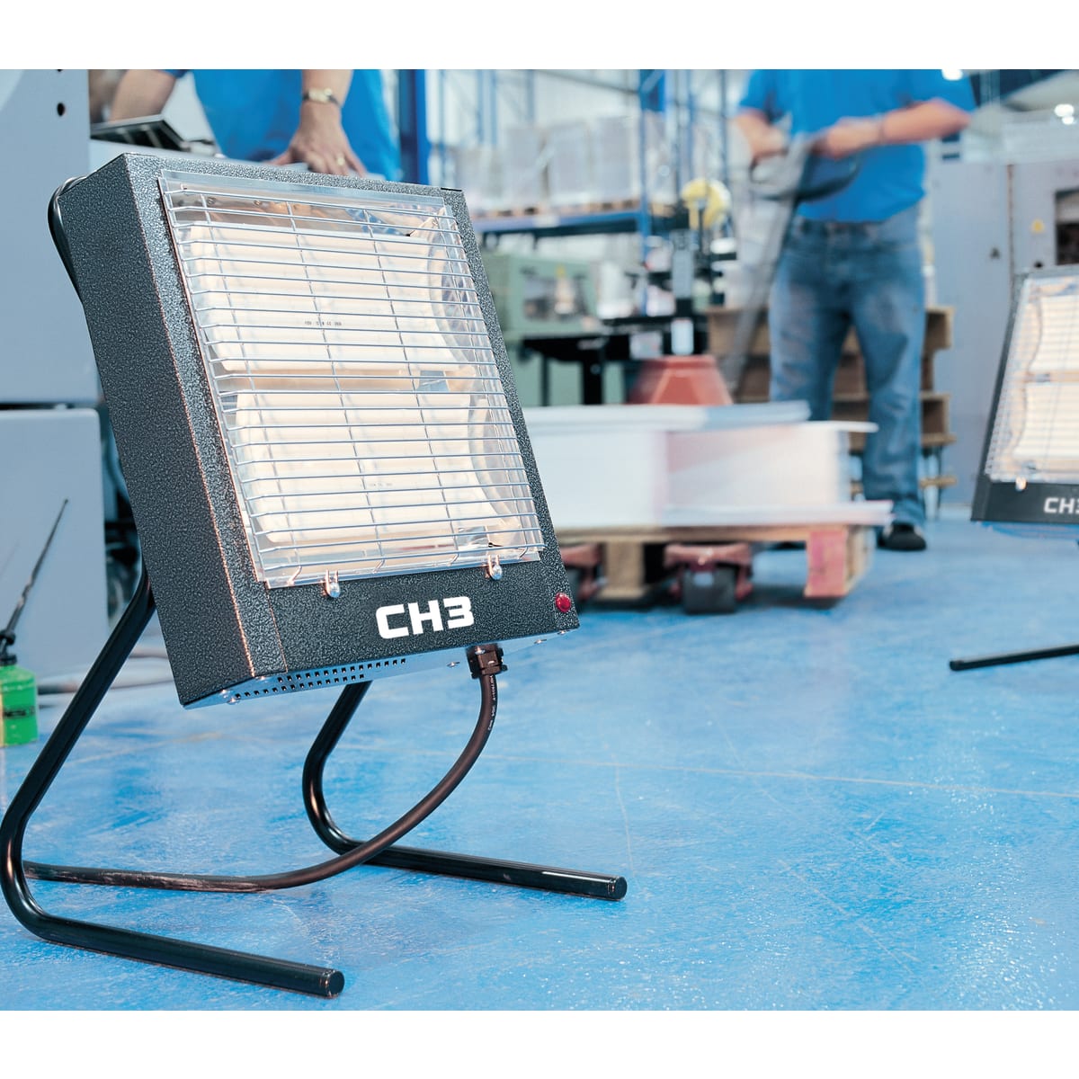 Temporary portable heater. Instant radiant heat. Can be wall mounted or suspended. 3m cable.