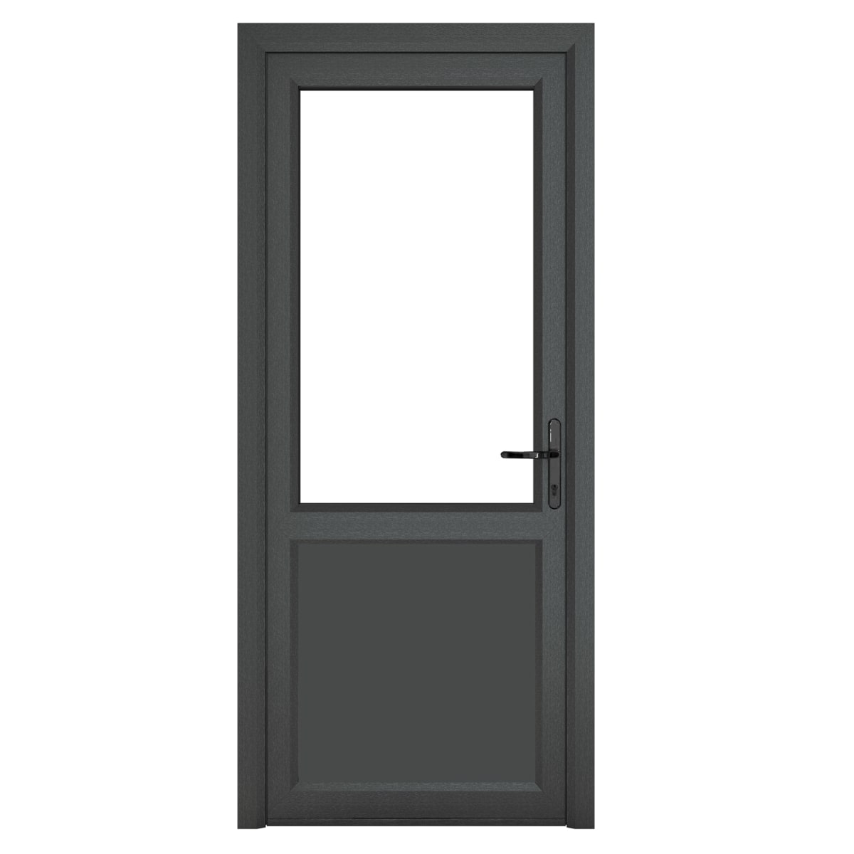 Doors & Joinery > External Doors > External uPVC Doors > PVC-U Single Door 1 Panel Clear Glazed Left Hand 840 x 2090 mm Grey/White