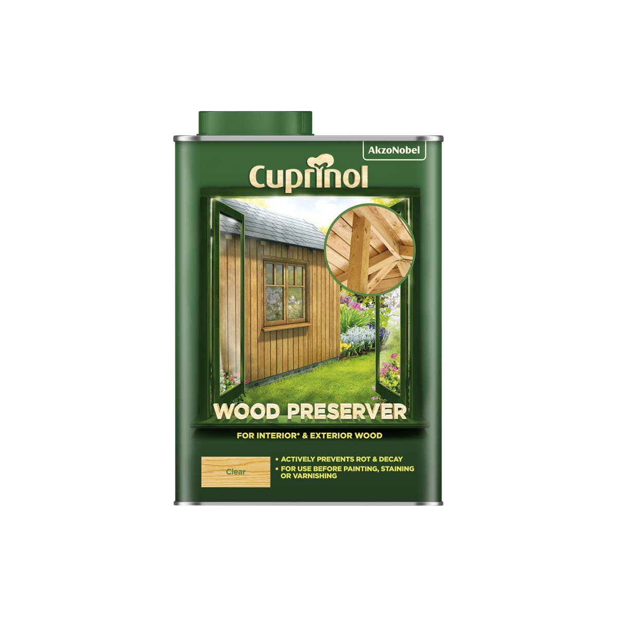 Cuprinol Wood Preserver Clear is a colourless general-purpose preserver for interior* or exterior use prior to painting, staining or varnishing. It gives deep penetrating protection to sound wood against decay, mould and blue-staining fungi. *Occasionally wet or interior wood with risk of condensation.