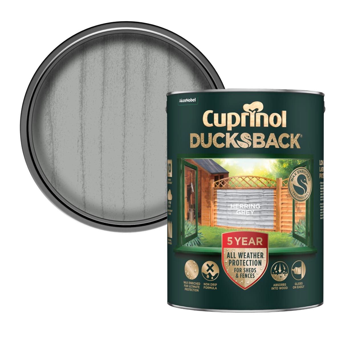 | Product Name | Cuprinol Ducksback 5 Year Waterproof 5L Herring Grey |