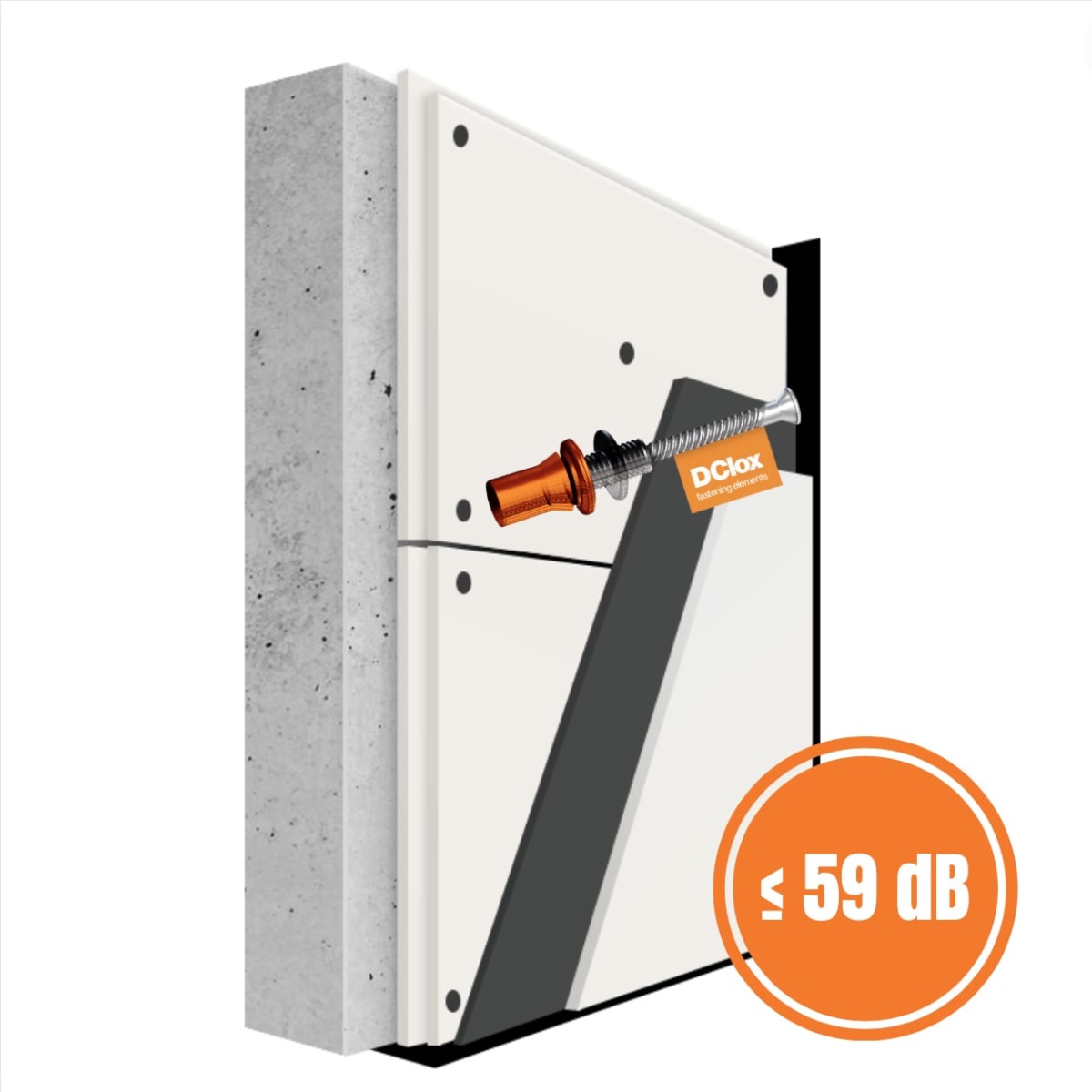 - Sound reduction index for air born noise up to Rw=59 dB