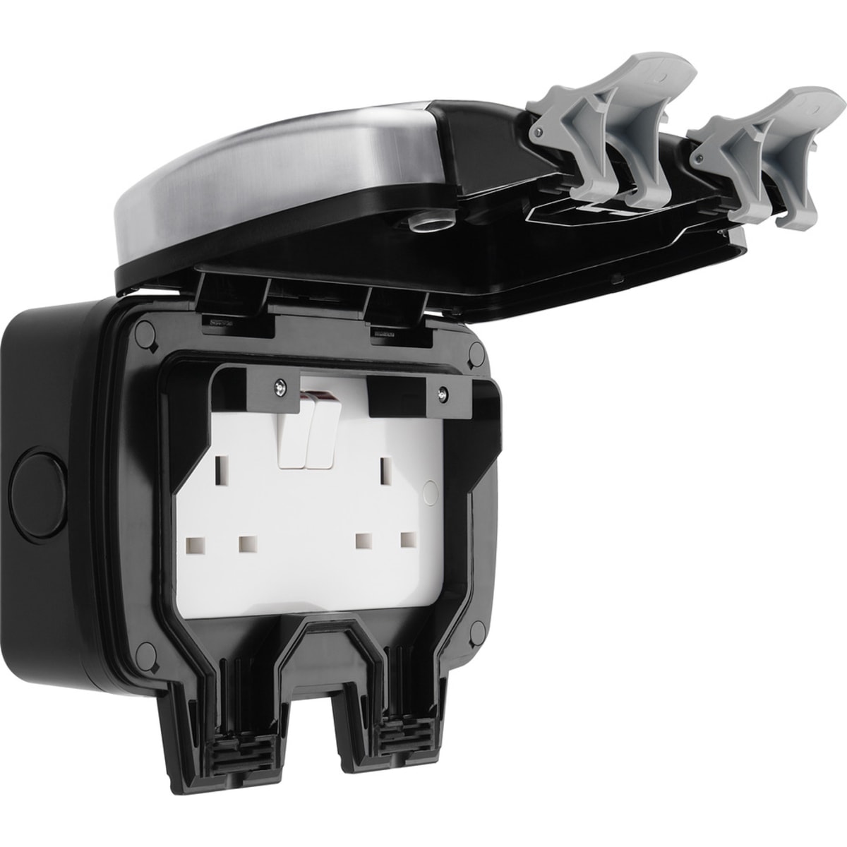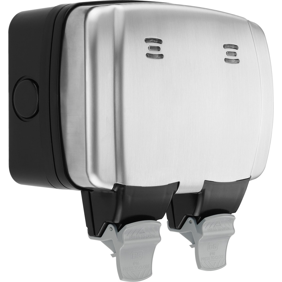 Outdoor sockets are an ideal option for managing outdoor or garden appliances and can be installed in gardens and patios, as well as in shed’s, outhouses and garages. This 13A double switched outdoor power socket from British General is IP66 Rated and designed to protect against water and dust ingress in the most arduous of conditions. Made with a stylish and robust stainless steel face plate on a polycarbonate housing and black mounting box, With clearly marked terminals and backed out captive screws for ease of installation. These sockets also have a blue LED power indicator which illuminates through the cover when it's closed.
