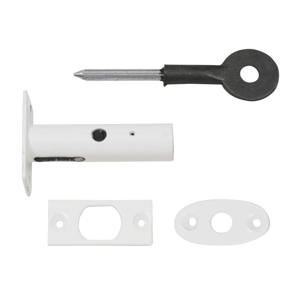 Door Rack Bolt White is a concealed door security bolt used for additional security purposes. It is recessed into the door with a key hole cutting into the internal face of the door. The bolts are driven by the use of a key which when turned, extends the bolts into the keeps placed in top and bottom of the door frame.
