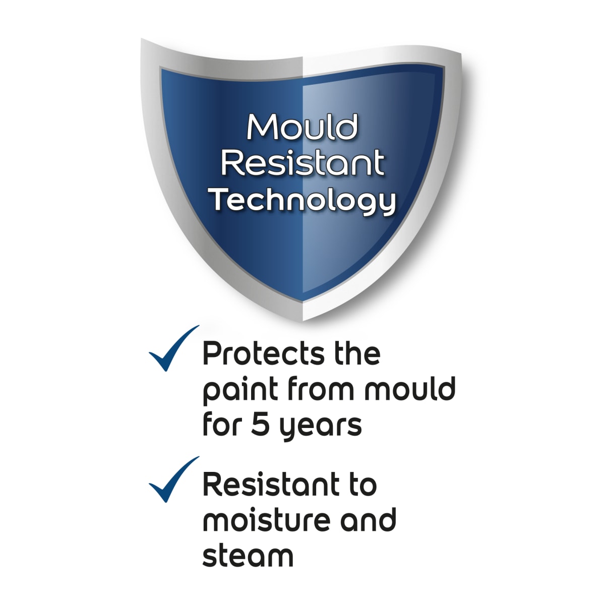 Dulux Easycare Bathroom paint is an exceptionally tough moisture and steam resistant paint. Its mould resistant formulation protects the paint against mould for five years, keeping your bathroom looking great for longer.