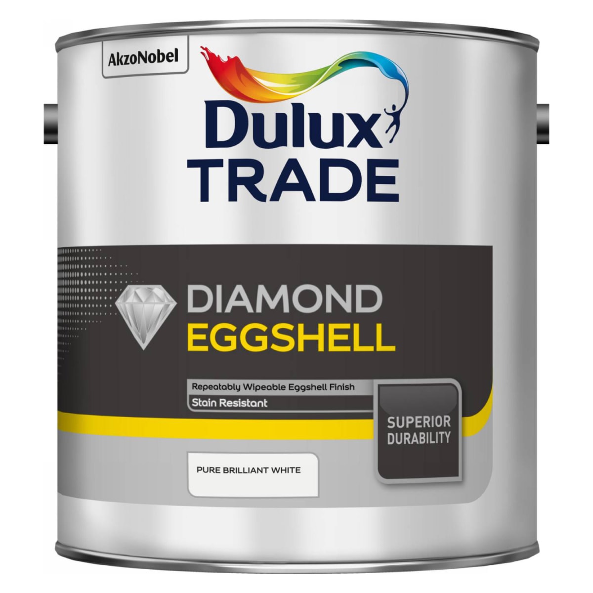 Dulux Trade Diamond Eggshell is a tough, durable and attractive mid-sheen finish. By using Diamond Technology from Dulux Trade it is 10 times tougher than Dulux Trade Vinyl Silk and resistant to typical household stains. It is quick-drying and of low odour compared to solvent-based paints, and therefore ideal for use where minimum disruption is important. Dulux Trade Diamond Eggshell can be used over surfaces previously decorated with solvent-based paints, providing proper surface preparation is carried out. Suitable for interior use on plaster, masonry and wood