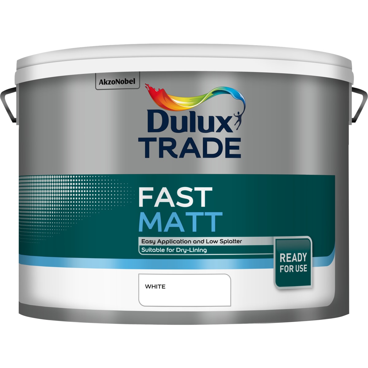 Dulux Trade Fast Matt is a low sheen interior matt emulsion that delivers excellent touch-up properties and is ideal for painting on plasterboard. The product is ready-for-use and has low splatter