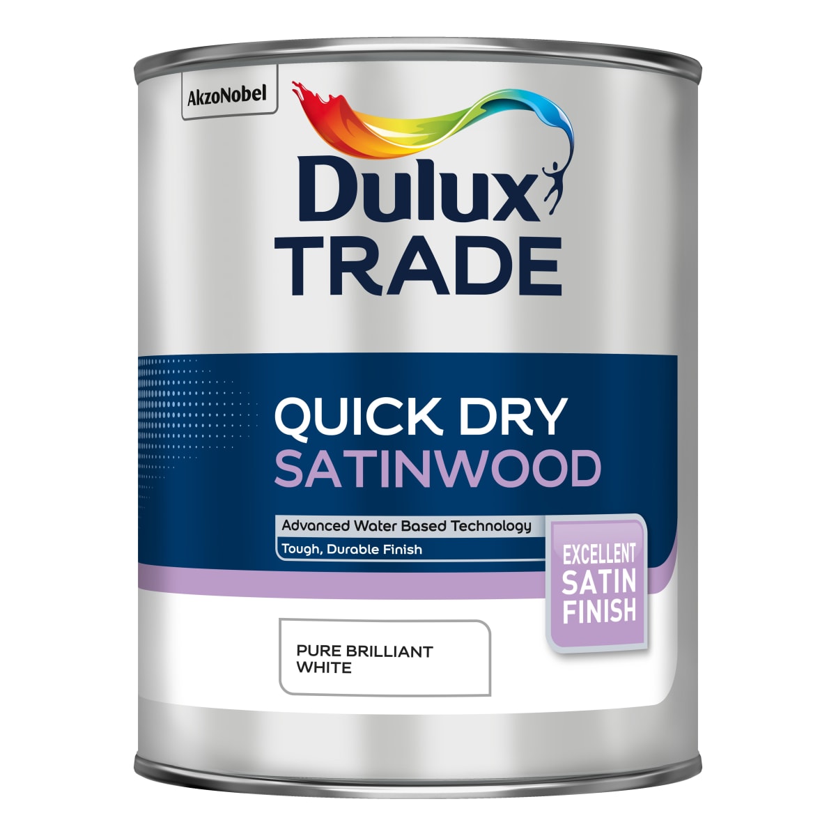 Painting & Decorating > Paint > Interior Paint > Dulux Trade Quick Dry Satinwood Paint 1L Pure Brilliant White