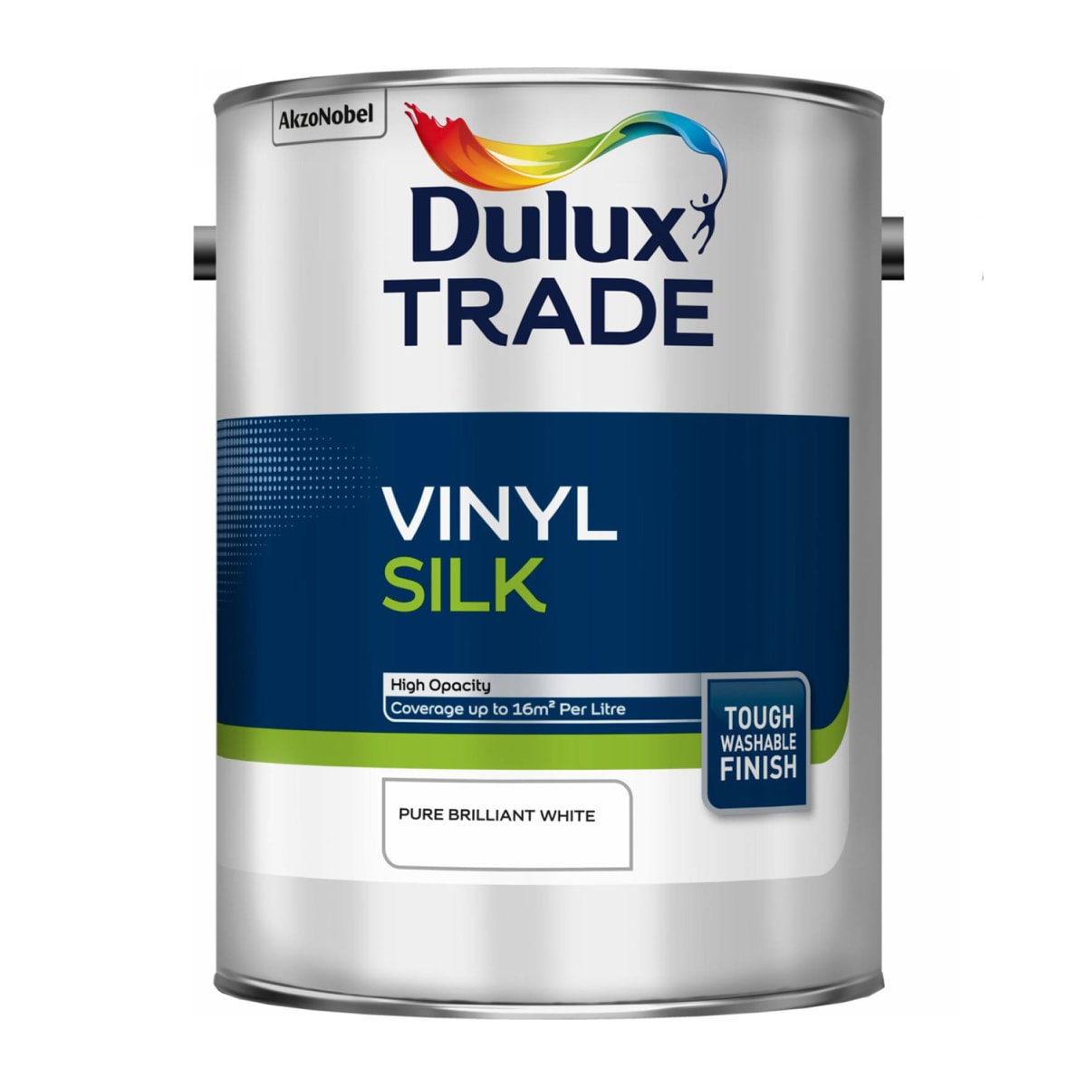 Dulux Trade Vinyl Silk 5 litres brilliant white paint is a tough emulsion suitable for use on plaster, masonry and wood. Offers good stain resistance and provides excellent opacity, obliteration and wet edge retention. Dries quickly in roughly 4-6 hours and has a coverage of about 17m2/l.
