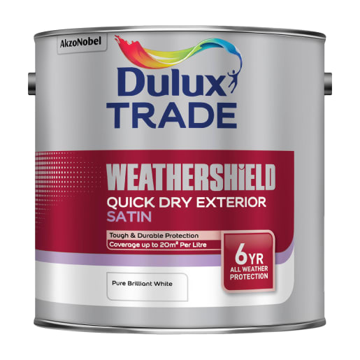 Dulux Trade Weathershield Quick Dry Exterior Satin is a water-based, mid-sheen finish which is part of a paint system specifically developed to give long lasting protection for exterior wood. Tests show that Weathershield Quick Dry Exterior Satin system will provide extensive protection for up to six years if correctly applied as per the instructions for use. Contains a fungicide to inhibit mould growth on the paint film and help it stay cleaner for longer