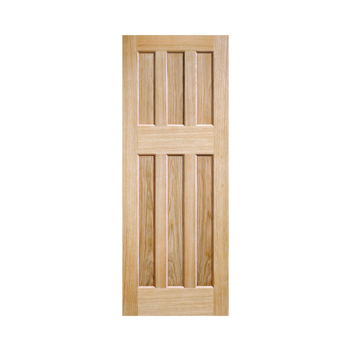 This 60's style door design features six rectangular shaped inset panels in a beautiful unfinished Oak wood.