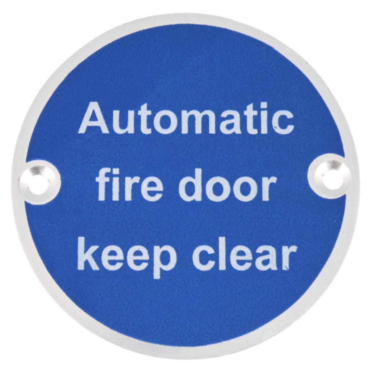 Doors & Joinery > Ironmongery > Fittings & Accessories > Frisco Automatic Fire Door Keep Clear Symbol 75mm FD60 Satin Aluminium